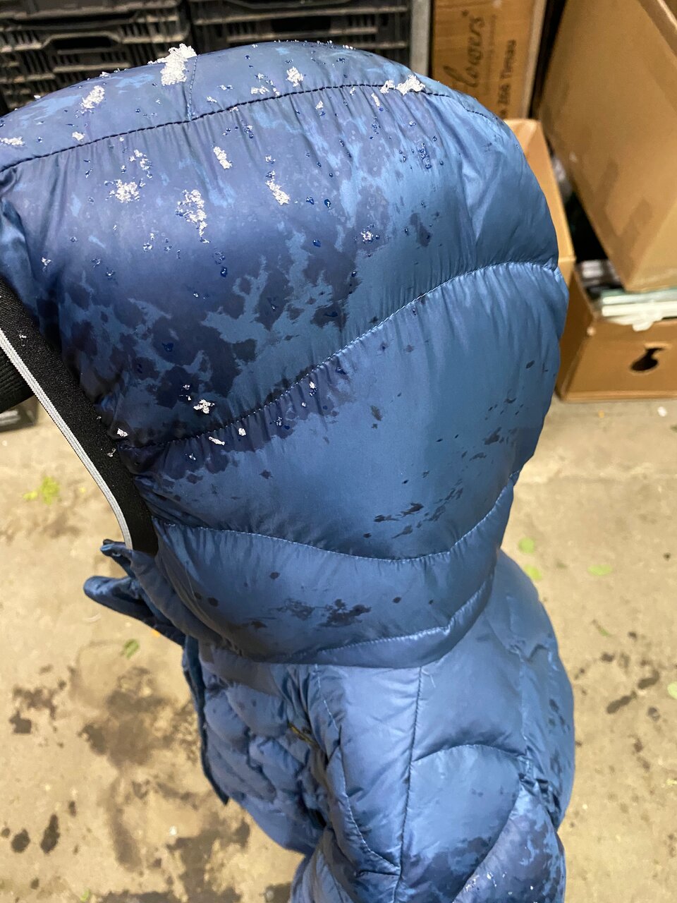 Испортили пуховик , отдала чёрный ,вернули белый , внешний вид стал ,как у тряпки . Вещь на выброс .