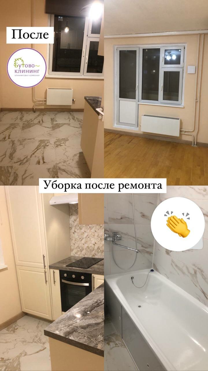 хочу выразить благодарность Бутово-Клининг за то, что на протяжении года поддерживали чистоту в нашей квартире! Благодаря вам мы избавились от старых пятен на кухонном гарнитуре и следов ржавчины в ванной. В 2024 мы снова будем к вам обращаться!)