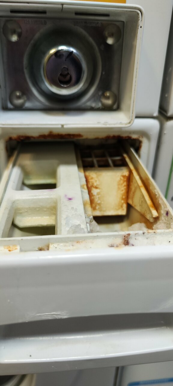 - Лоток для порошка грязный.