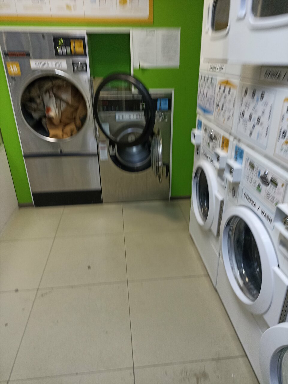 Все нормально. Машинки шустрые и стирают качественно. Добавить бы только сидячих мест для ожидания.