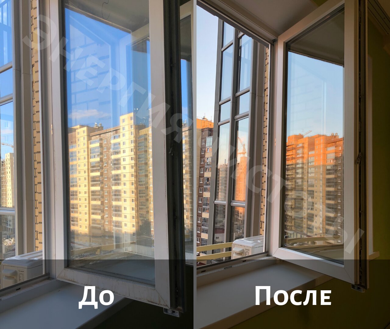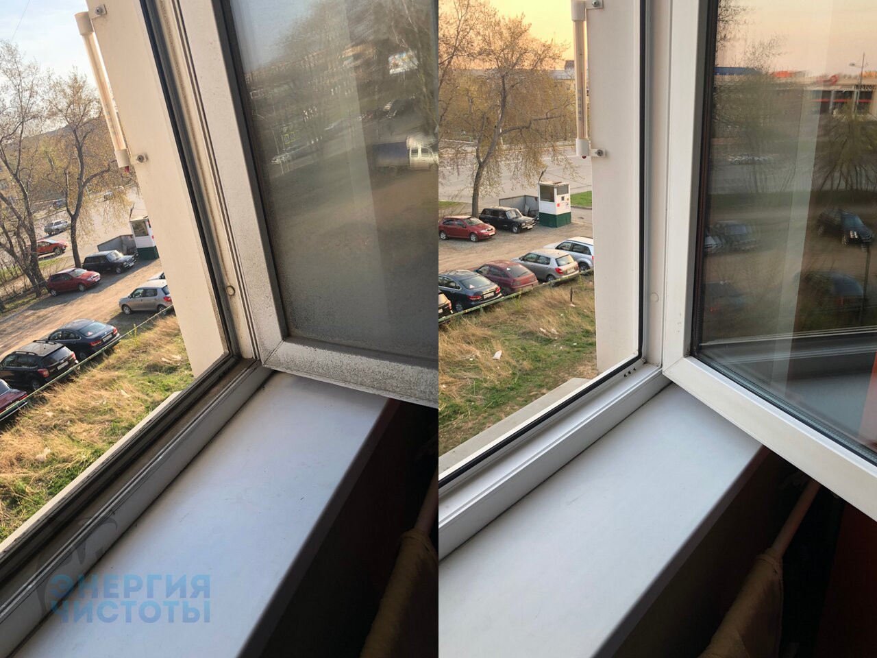 Мытье с двух сторон: створка, стеклопакет, откос, фурнитура, импост, рама, ручка, резиновое уплотнение