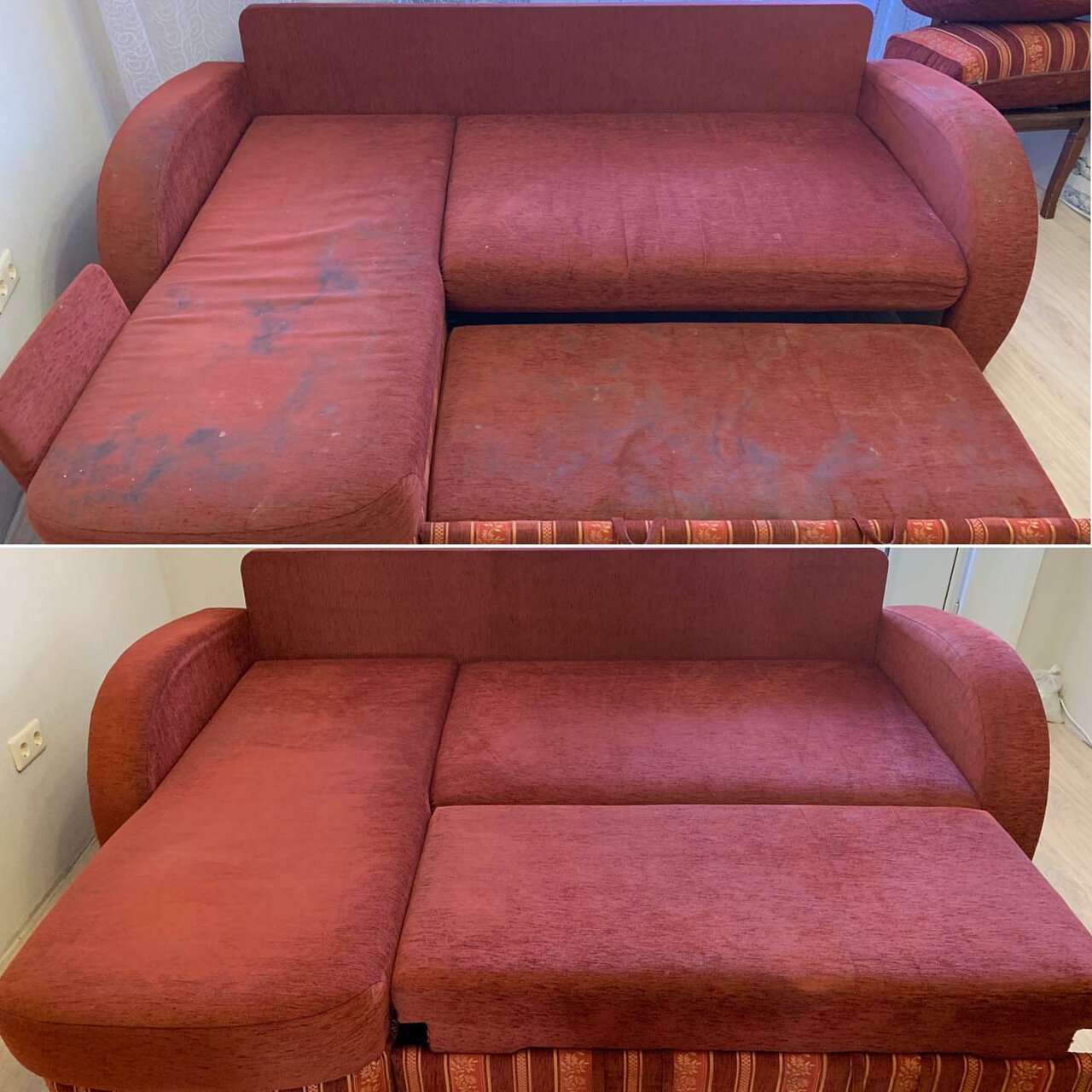 - Почистили диван угловой раскладной и кресло нормально.