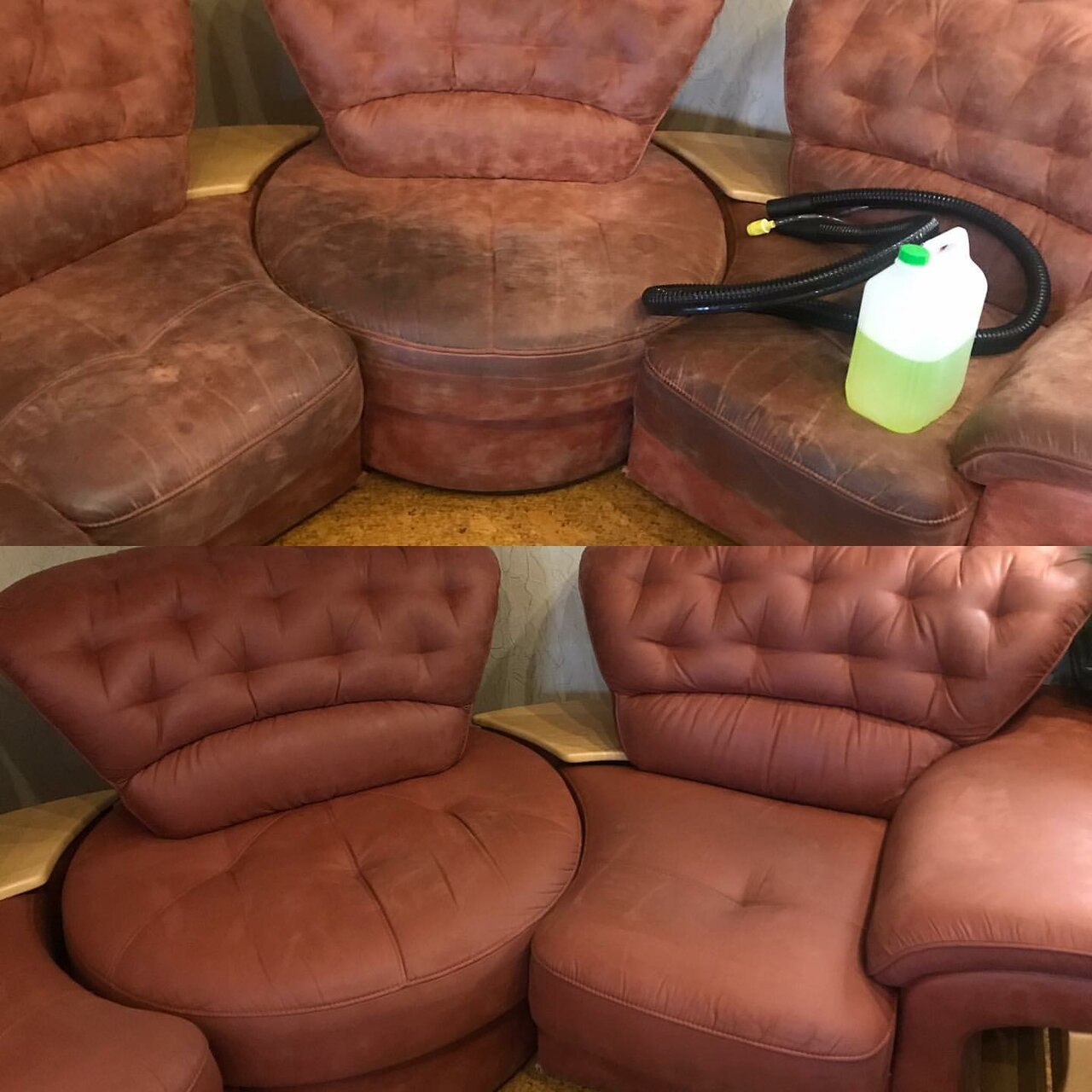 - Почистили диван угловой раскладной и кресло нормально.; Приложили фото выполненной работы.