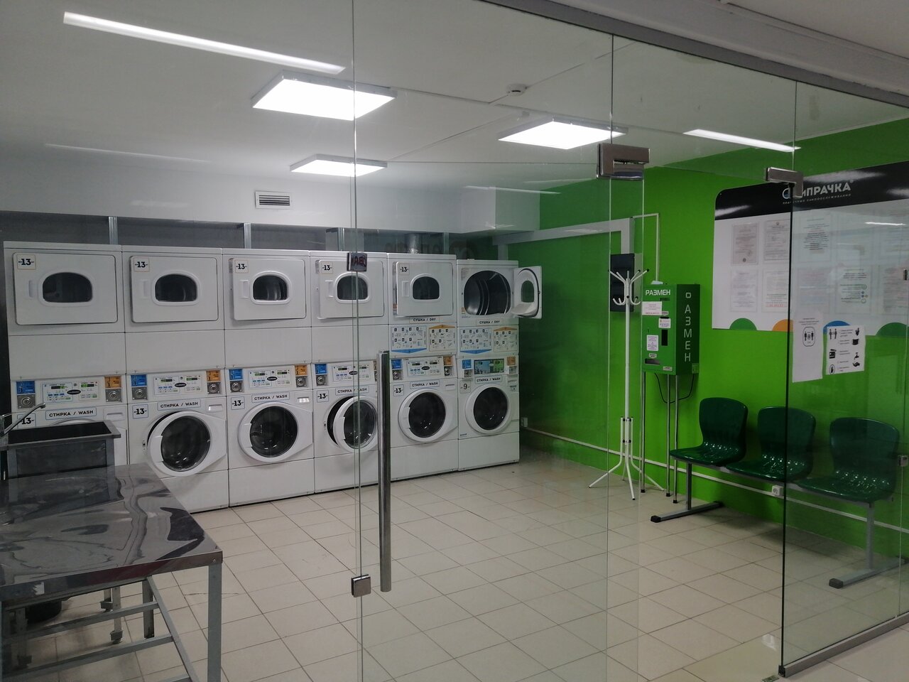 На сайте стоимость 400 по факту 500. Чукча с северного входа сказал, что в выходные они не работают))) по факту, все хорошо. Есть мойка стол и вешалка. Все цивильно. Задумался о покупке машины новой стиральной: здесь классно, профессионально. Надо-ли?