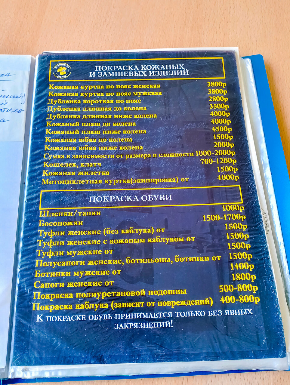 - Покраска и ремонт изделий из меха, кожи и замши 2000₽