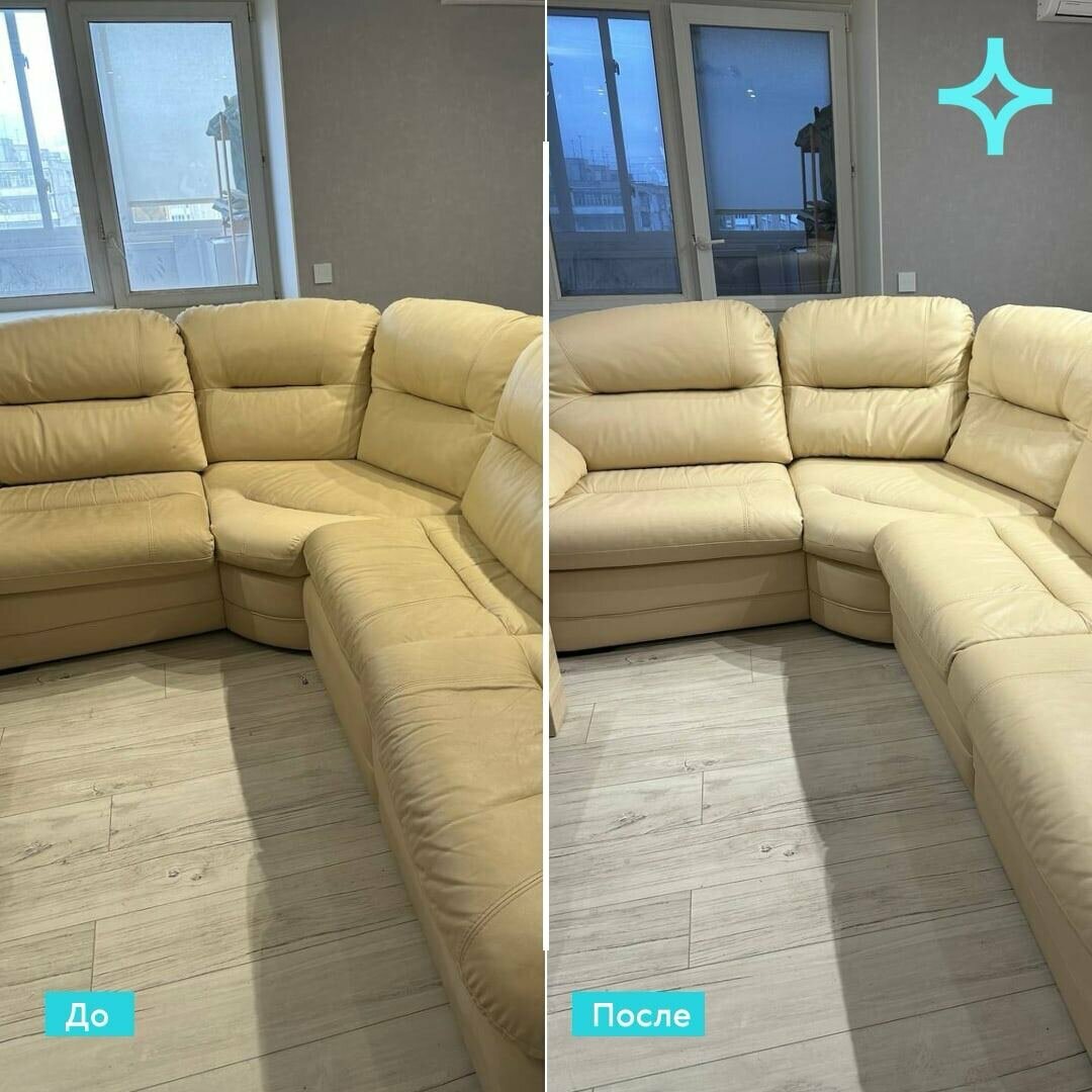 Вся работа проделана филигранно. Очистили диван от временных загрязнений, стал как новый