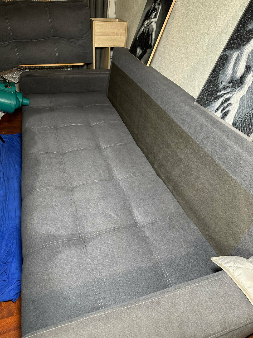 Все откладывали химчистку дивана…. Но наконец-то вызвали профессионалов и были в шоке от черной воды и кучи пыли и шерсти надо бы делать химчистку раз в полгода! Диван стал ярче, как новенький, очень довольны.