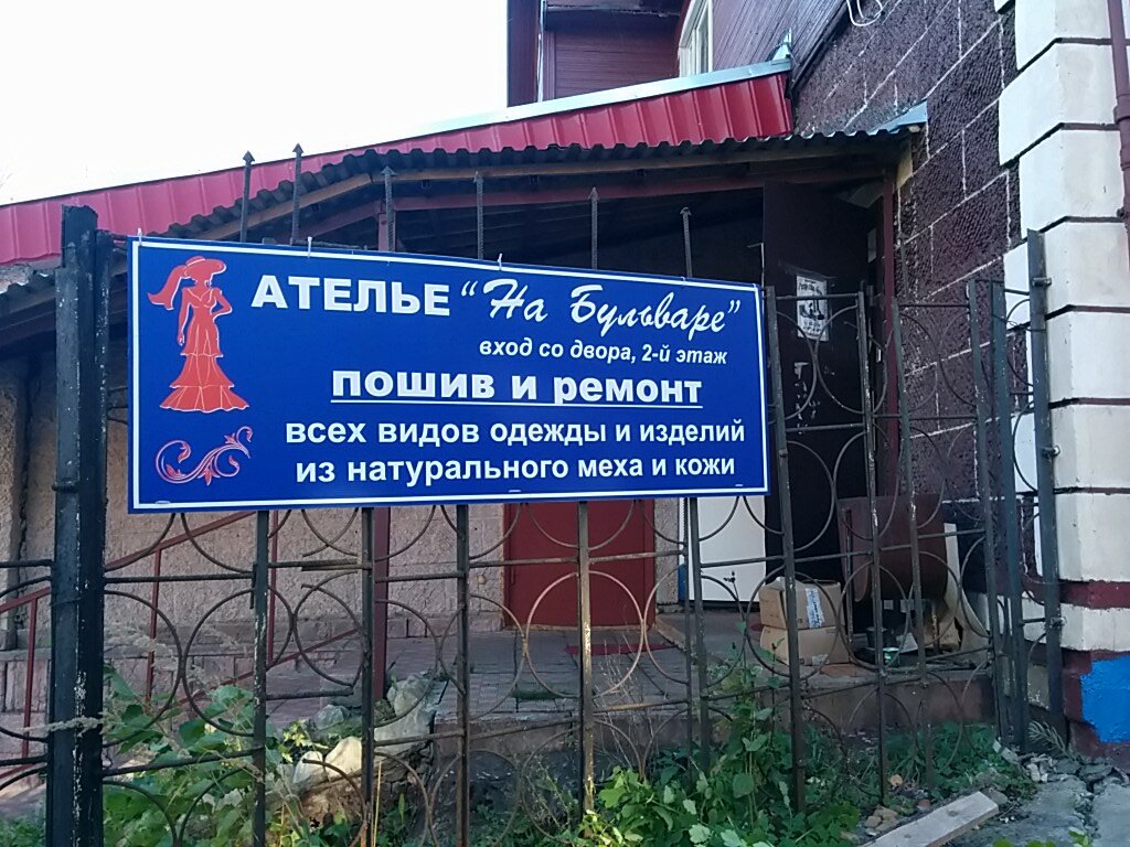 «Ателье на бульваре» — химчистка в Костроме, расположенная по адресу Петрковский бульвар, 22. Салон предлагает профессиональную очистку одежды, обуви, текстиля, кожи, меха, ковров и мебели с использованием современных технологий и химических средств. Режим работы: пн-пт 10:00–18:00, сб 11:00–15:00. Контактные телефоны: +7 (906) 609-84-64, +7 (4942) 42-47-66.