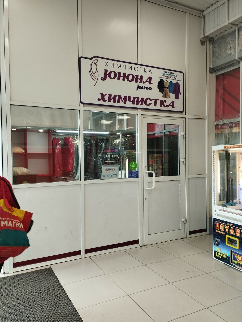 Химчистка «Юнона» в Красноярске предлагает профессиональную очистку одежды, обуви, текстиля, кожи, меха, ковров и мебели с использованием современных технологий и химических средств. Расположена по адресу: проспект имени Газеты Красноярский Рабочий, 120. Работает ежедневно с 11:00 до 20:00. Контактные телефоны: +7 (391) 288-03-83, +7 (953) 588-03-83, +7 (391) 288-84-60. Дополнительные услуги уточняйте по телефону.