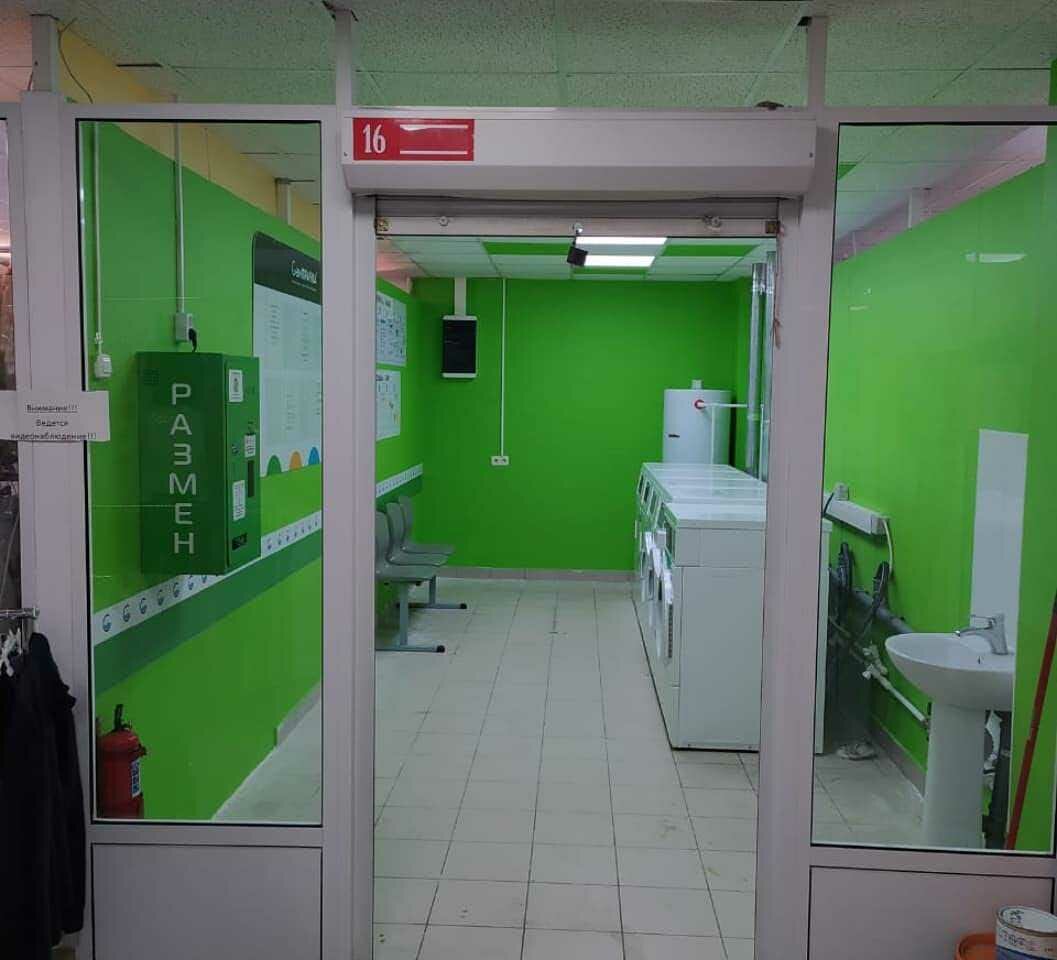 Прихожу сюда второй раз. На данный момент здесь 2 стиральные машины и две сушилки. Купить жетон можно по банковской карте. Из наличных — автомат не принял 1000 руб купюры — я попробовала 2 разных. Каждый жетон по карте покупается отдельно, чек машина не выдает. Стирка стандартная 300 руб, сушка 100 руб. Если положить максимум загрузки, то стирает около 45 минут, несмотря на таймер на 32 минуты. В помещении пахнет сыростью. Есть три посадочных места, чтобы ждать. Так и не поняла, можно ли уйти, пока стирает машина — откроет ли кто-то её, если придет, пока меня не будет. Стиральный порошок здесь не продаётся, но на 1 этаже есть небольшая Лента, можно купить там