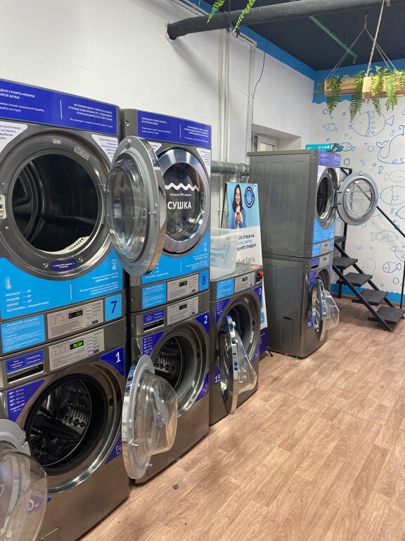 Самая высокая оценка этой прачечной!! для стирки выбираю ее! Много места, есть стульчики и диванчики, можно расположиться для ожидания. 5 машин для стирки и 4 сушки, чисто, уютно, Машинки чистые. Видно, что следят за чистотой! Если нет своего порошка, можно купить в прачечной, так же и кондиционер. Для сушки есть теннисные мячики, чтобы вещи взбивались. Одна стирка 300₽, сушка 100₽ Есть уголок для деток, чтобы не скучали. Советую всем!