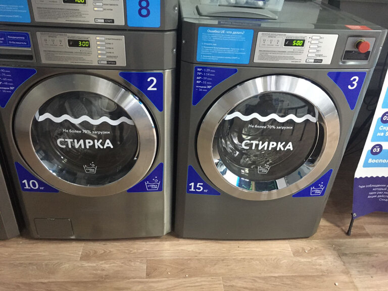 Удобно когда нужно постирать что-то объемная или дома сломалась стиральная машинка(мой случай).Чисто,три машины на 10кг,одна на 15кг,три сушильные машины.Есть порошок,кондиционер(хотя он вообще без запаха,лучше брать свои средства) по 50руб за порцию(наливаются в стаканчик,который нужно поставить в автомат на место. Из минусов то,что помещение находится глубоко в подвале,было дико не удобно тащить туда сумки с бельем и обратно.Второй минус это запах в самих машинах,все же не известно кто и что до этого там стирал….