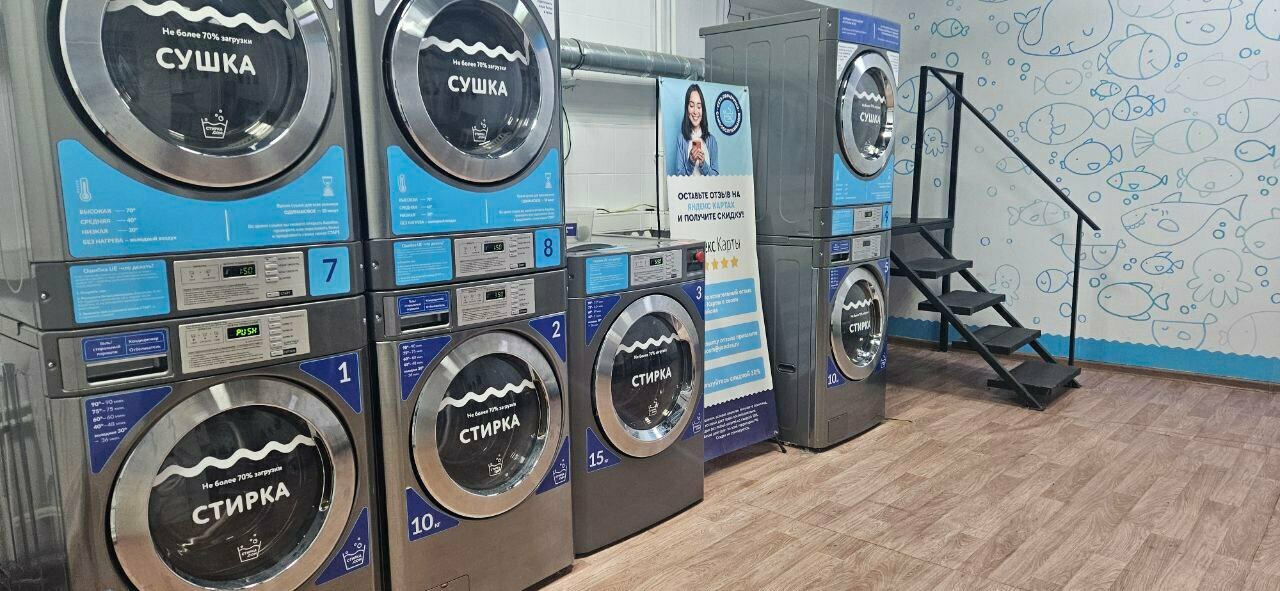 Хорошее место, ни капли не жалею, что решилась на посещение (дома сломалась машинка и накопились вещи). Тут нет очередей, зато есть оплата карточкой:) Можно использовать свои, привычные, средства стирки, а можно и купить на месте. Цены приемлиемые, постирать 10кг -всего 300 рублей. Стирала тонкое летнее одеяло и комплект белья постельного большой, осталась очень довольна! Спасибо!