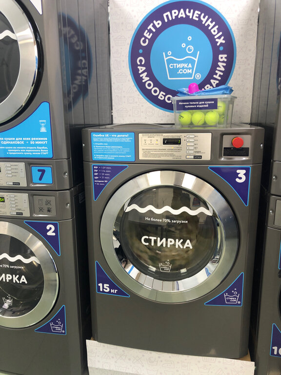Отличные стиральные и сушильные машины. Куртки и большие пледы стирать удобно. Чисто, аккуратно.