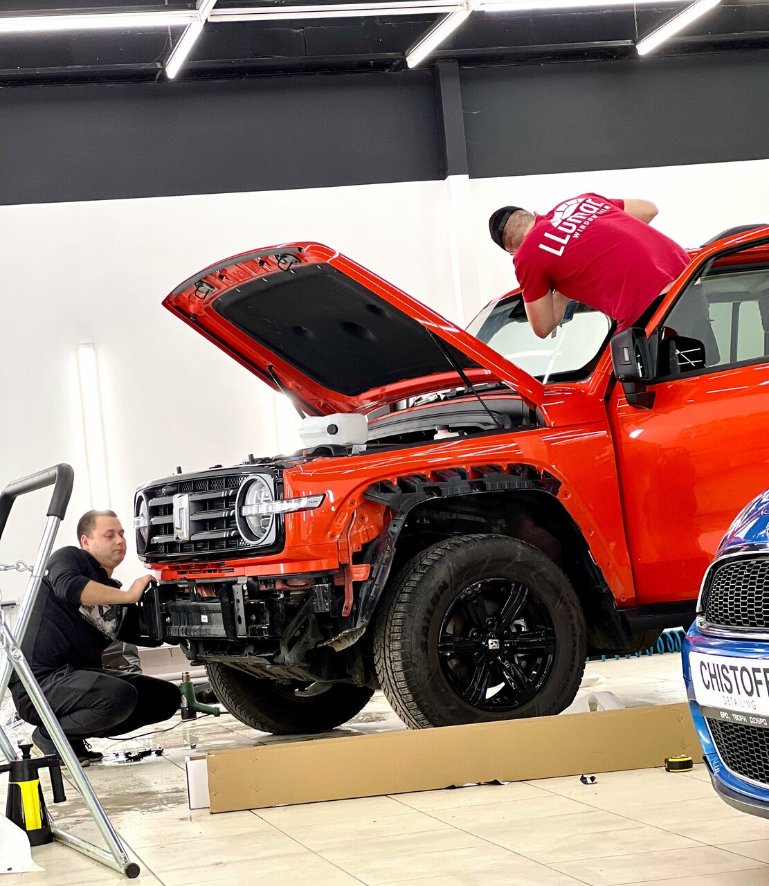 Хорошая студия, все чисто, правильный свет. Мастера грамотные, профессионалы своего дела, помогут сориентироваться , подскажут. Клеял полностью перед автомобиля в полеуретан, все сделали хорошо, замаскировали сколы. Контрольный осмотр и приятные бонусы по оклейке кузова