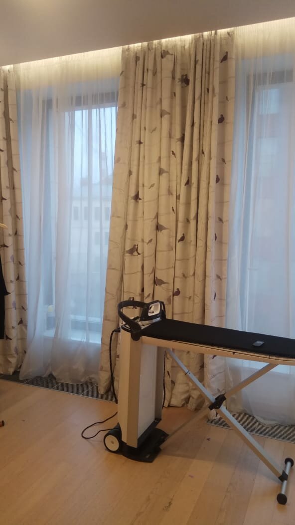 Шторы после химчистки повесили не верно, мятые, задача для мастера была повесить верно раздвижной механизм, отпарить, с задачей справился великолепно мастер Кирилл, я очень довольна результатом, то что я хотела, я получила. Спасибо фирме, сохранила контакт.