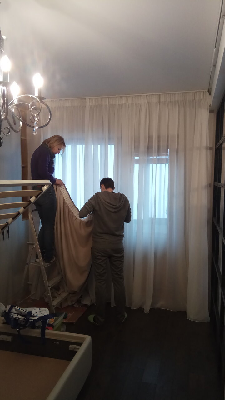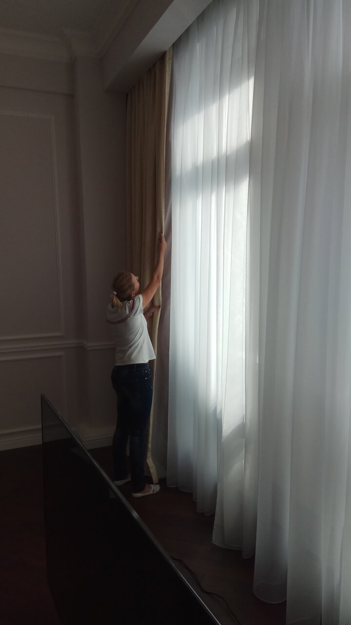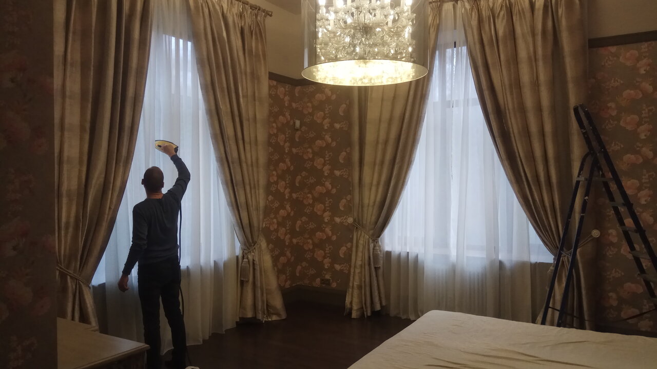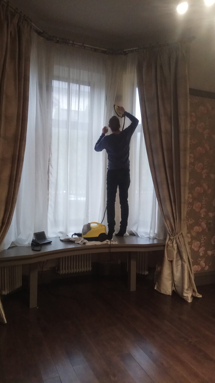 Действительно всё очень быстро, четко и главное чисто без проблем. Не нужно рисковать, взбираясь на эту лесенку-чудесенку. Голова кружится, ужас. Тюль ещё ладно, а двойные шторы, да и не войдут в машинку. А как потом на узкой доске их гладить??? В общем подумали, подумали и вызвали эту прекрасную компанию. Два дня и все проблемы закончились! Мы как раз меняли окно в спальне. Очень благодарны Александру — опытный , грамотный, прекрасно общающийся сотрудник! С удовольствием рекомендуем Чистые шторы!