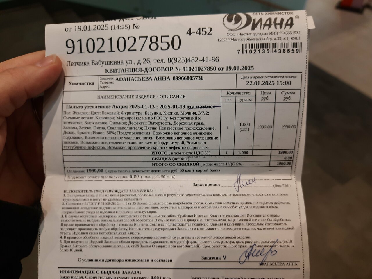 Пытался сдать шторы в химчистку. Приёмщица изначально не хотела принимать заказ, сказав, что это дорого. В общении не была заинтересована, так как следила за чьими-то детьми, которых ей кто-то оставил ‘приглядывать’. Пришел, так как получил СМС рассылку о скидке на химчистку штор, но на месте сотрудница сказала, что о такой акции не знает, всем своим видом показала, что ей с нами не интересно общаться. Возмутило то, что расчет стоимости я производил сам (по тарифу, который озвучила мне сотрудница), а стоимость работы, по сравнению с прошлой химчисткой этих же штор выросла на несколько тысяч. С таким подходом и сотрудниками вы явно растеряете клиентов, больше в данную химчистку я не пойду.