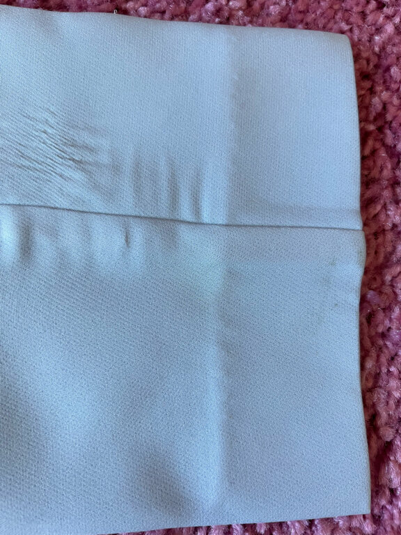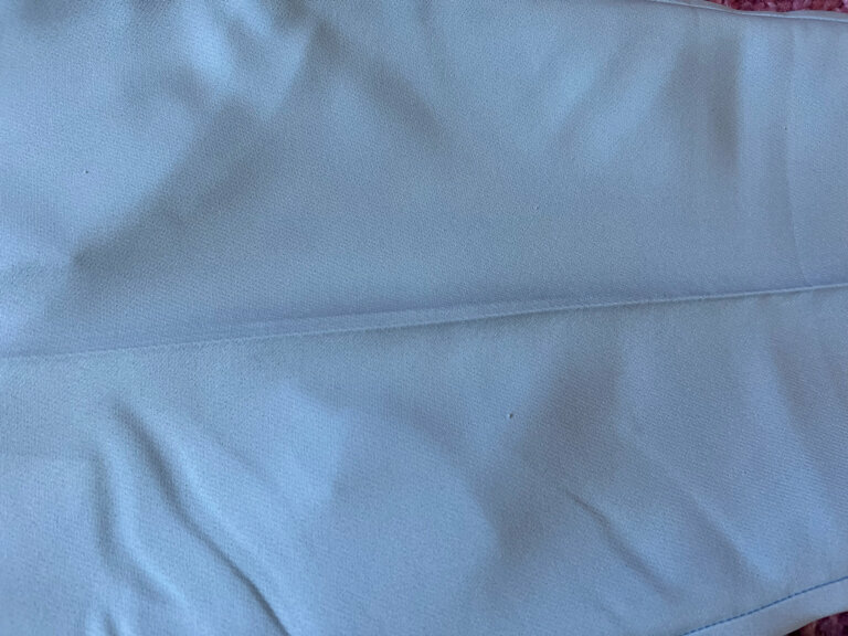 - Некачественная обработка брюк (пятна остались, стрелки неровные).
