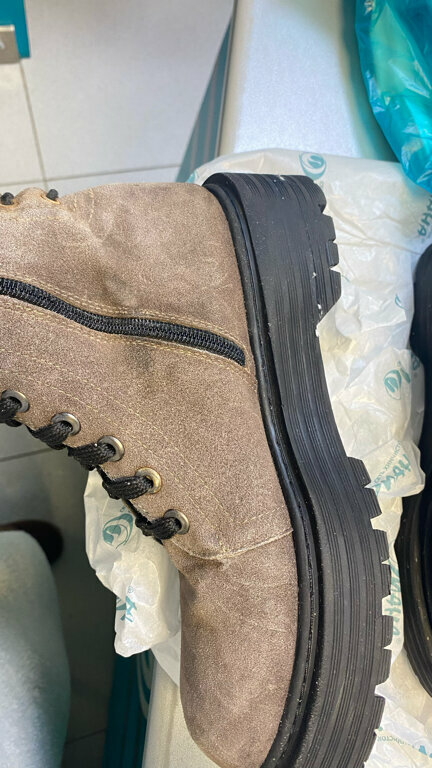 Испортили обувь! МЕСЯЦ, вместо обещанных 7-10 дней мои ботинки были в химчистке, в итоге мне прислали то, что на фото. Пятна, подраная замша и оба ботинка разных оттенков. На написанную претензию ответили банальной отпиской. Также стоит внимательно читать квитанцию, так как приемщик при приеме заказа может указать чуть ли не максимальный процент износа обуви, когда она была отношена 2 месяца. Соответственно, подписывая это все, у вас даже нет возможности подать жалобу куда-то дальше за некачественное исполнение услуги. В первый раз вижу такую халтуру, это трэш так оказывать услуги в 2023.