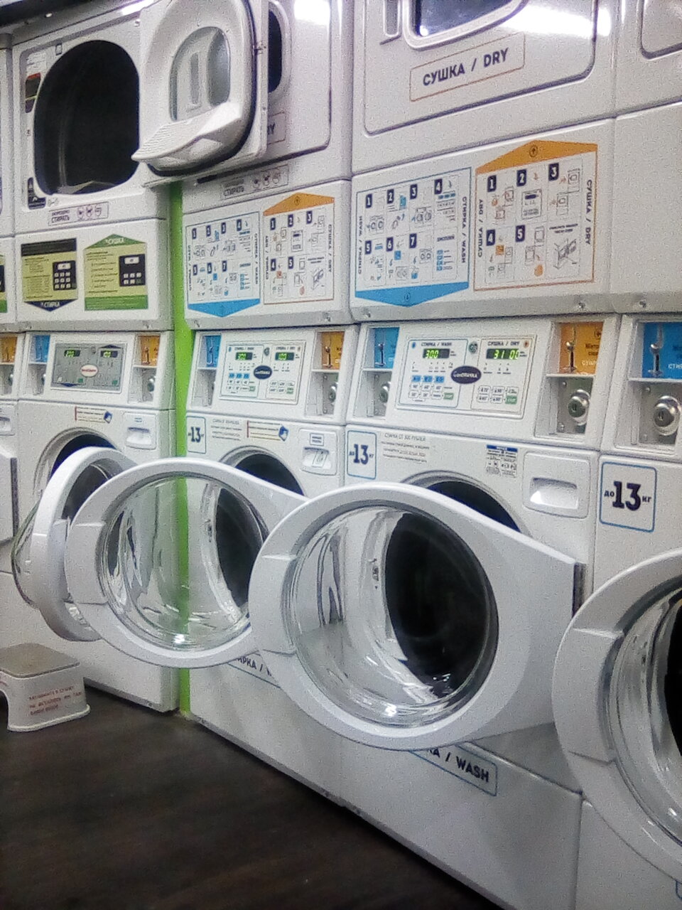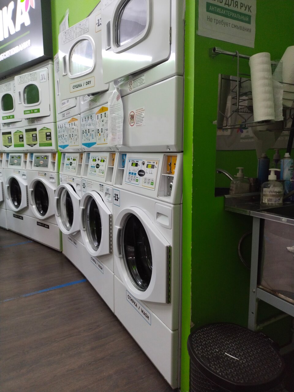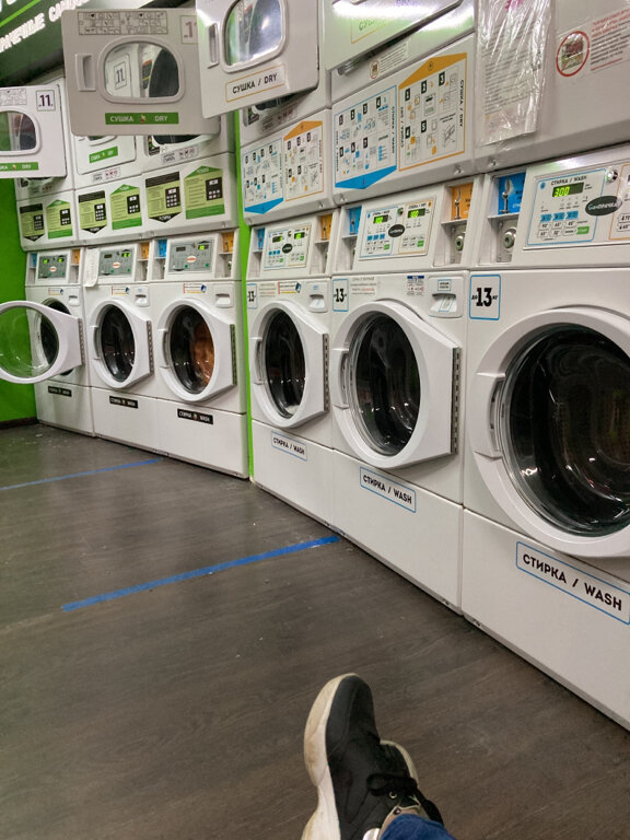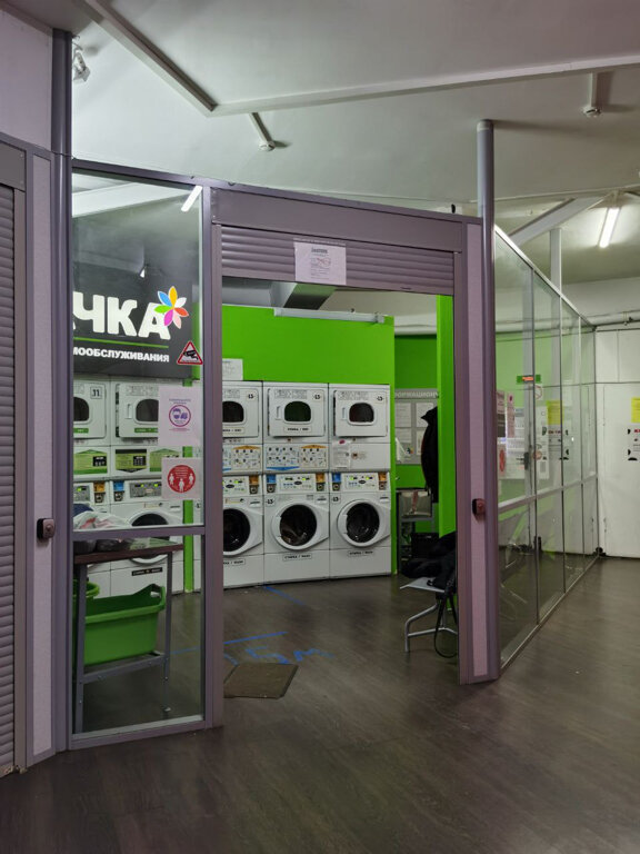 Не большая комната со стиральными машинками и сушками, около 10 шт. Удобно и быстро можно постирать вещи и высушить. Жетоны можно приобрести за наличку и по карте. Также можно купить порошок и прочее. Удобная парковка, не далеко от метро. Рекомендую