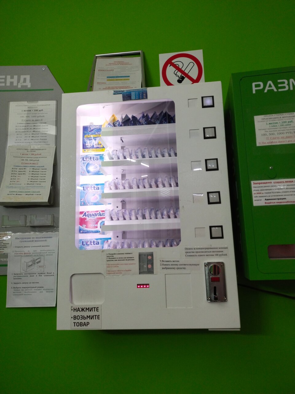 - Возможность купить средства для стирки на месте.