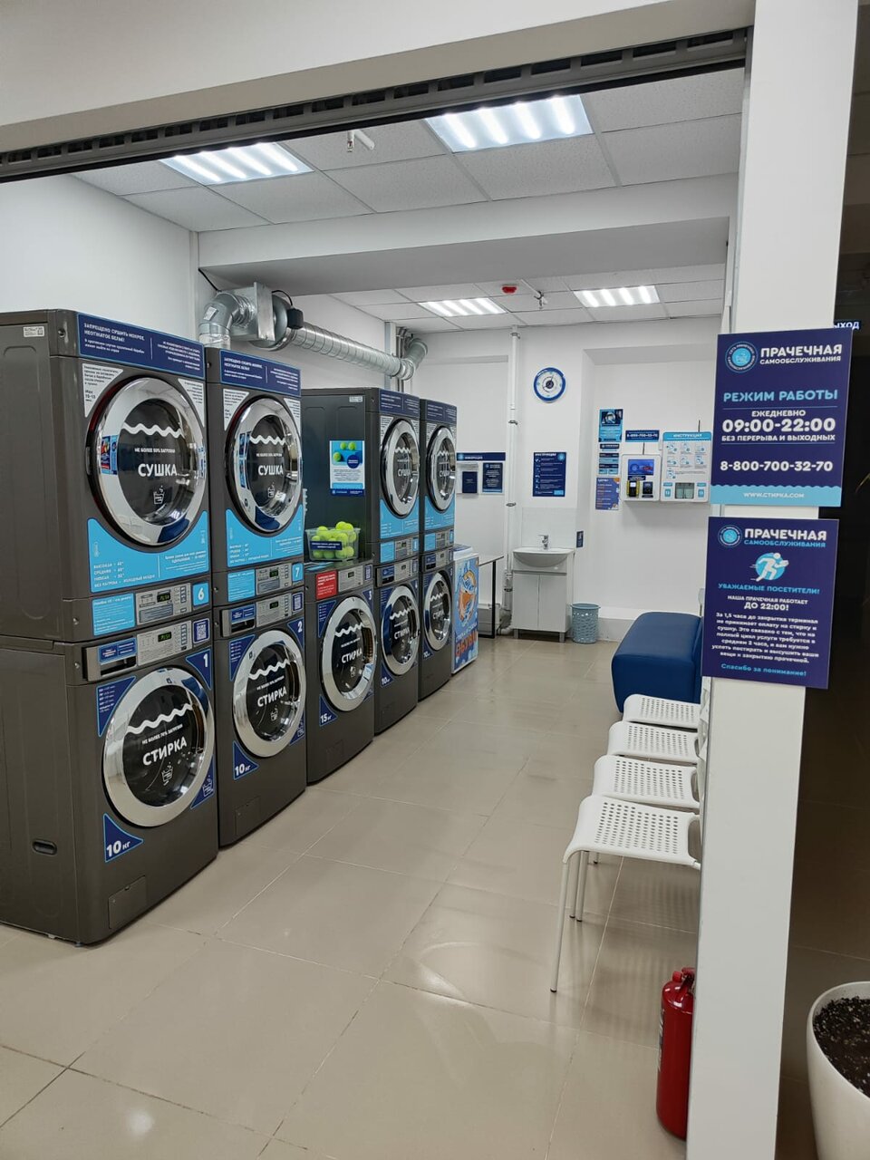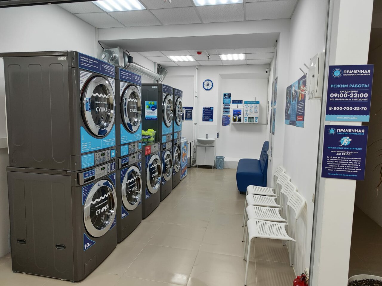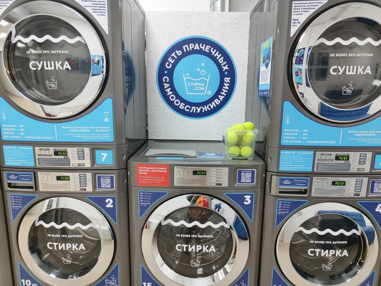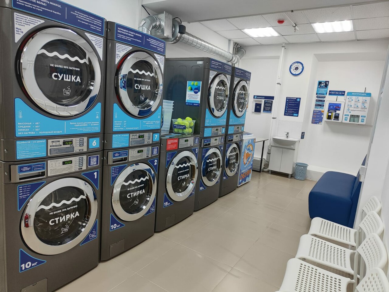 Отличная прачечная! Пришел на 2 часа и забрал чистые сухие вещи , всем рекомендую Сушат и стирают машины отлично . Вместительные и если вдруг забыл гель /порошек там все есть за отдельную плату.