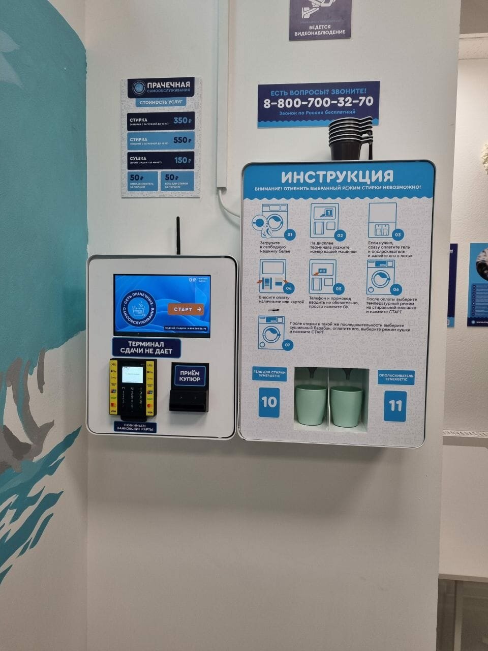 1 порция кондиционера SYNERGETIC. За 1,5 часа до закрытия терминал не принимает оплату на стирку и сушку!