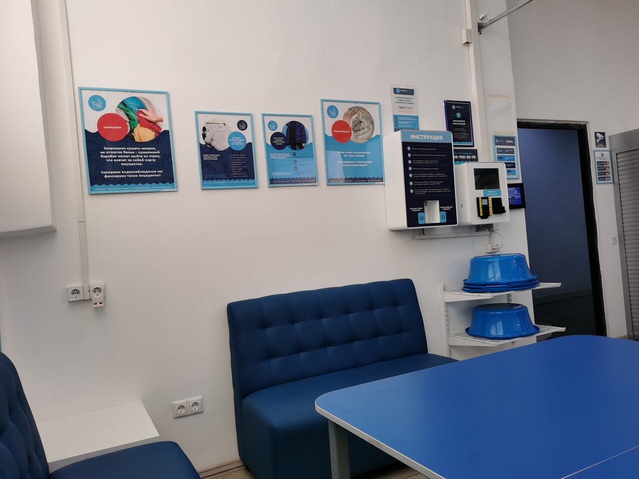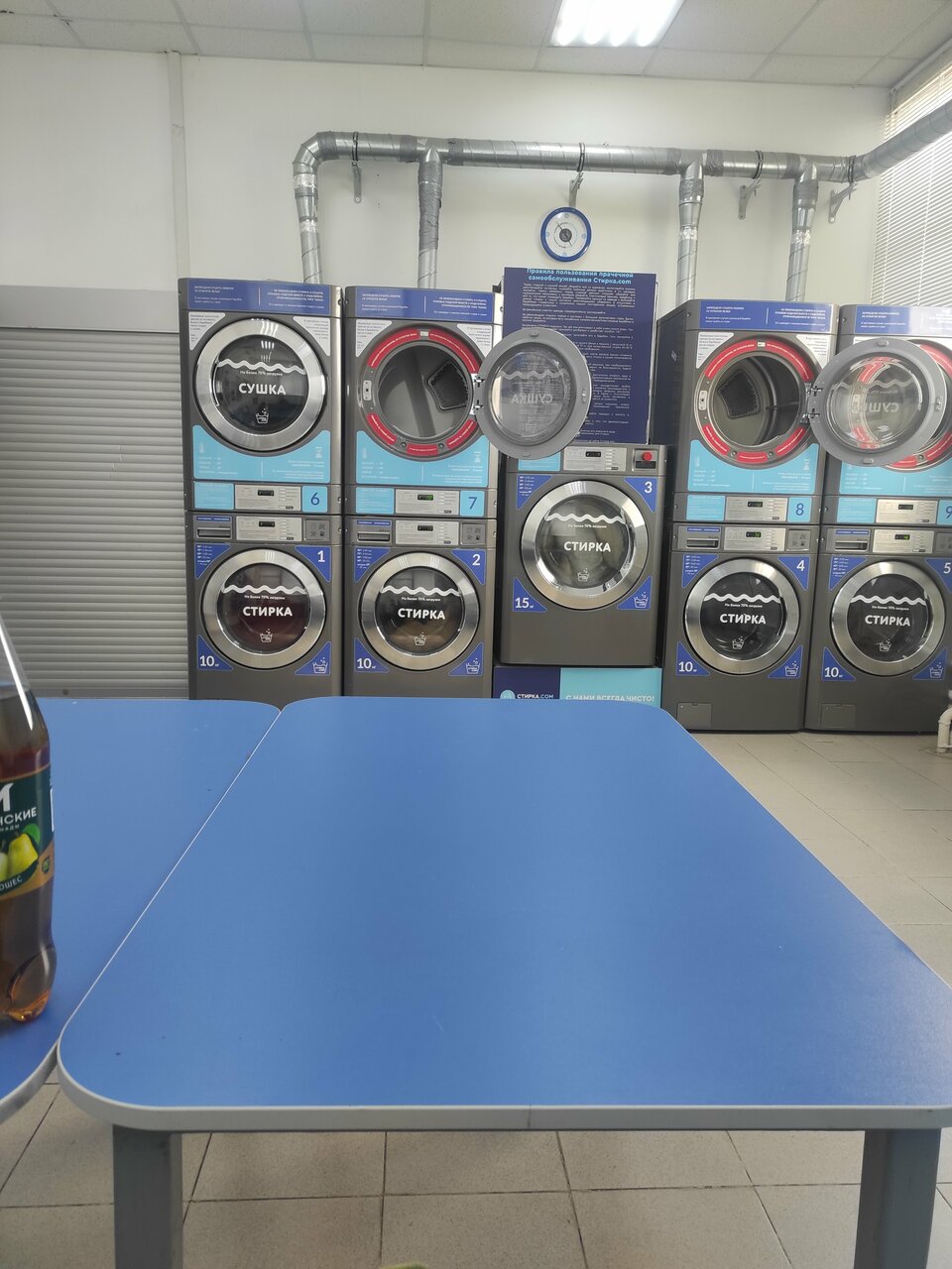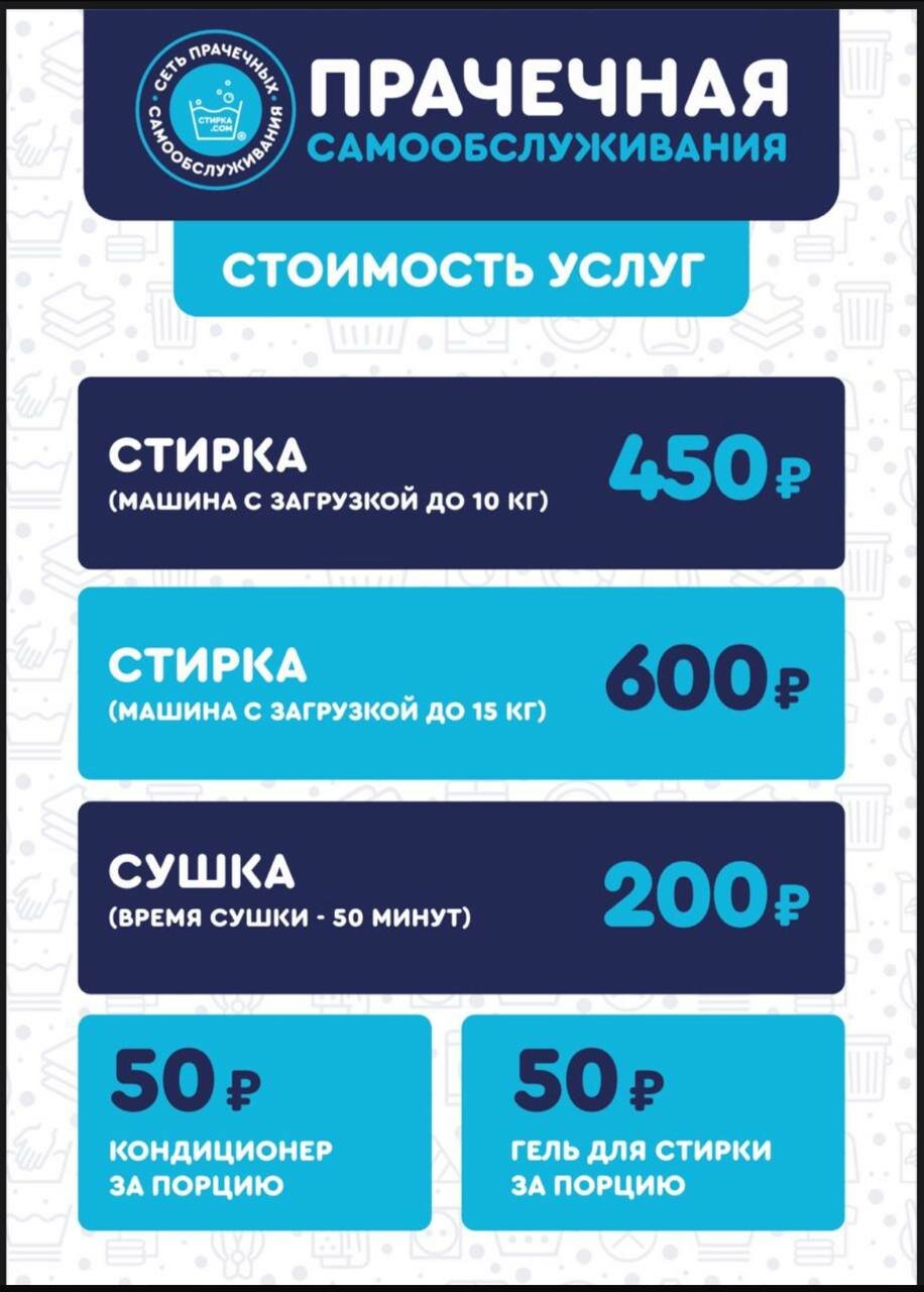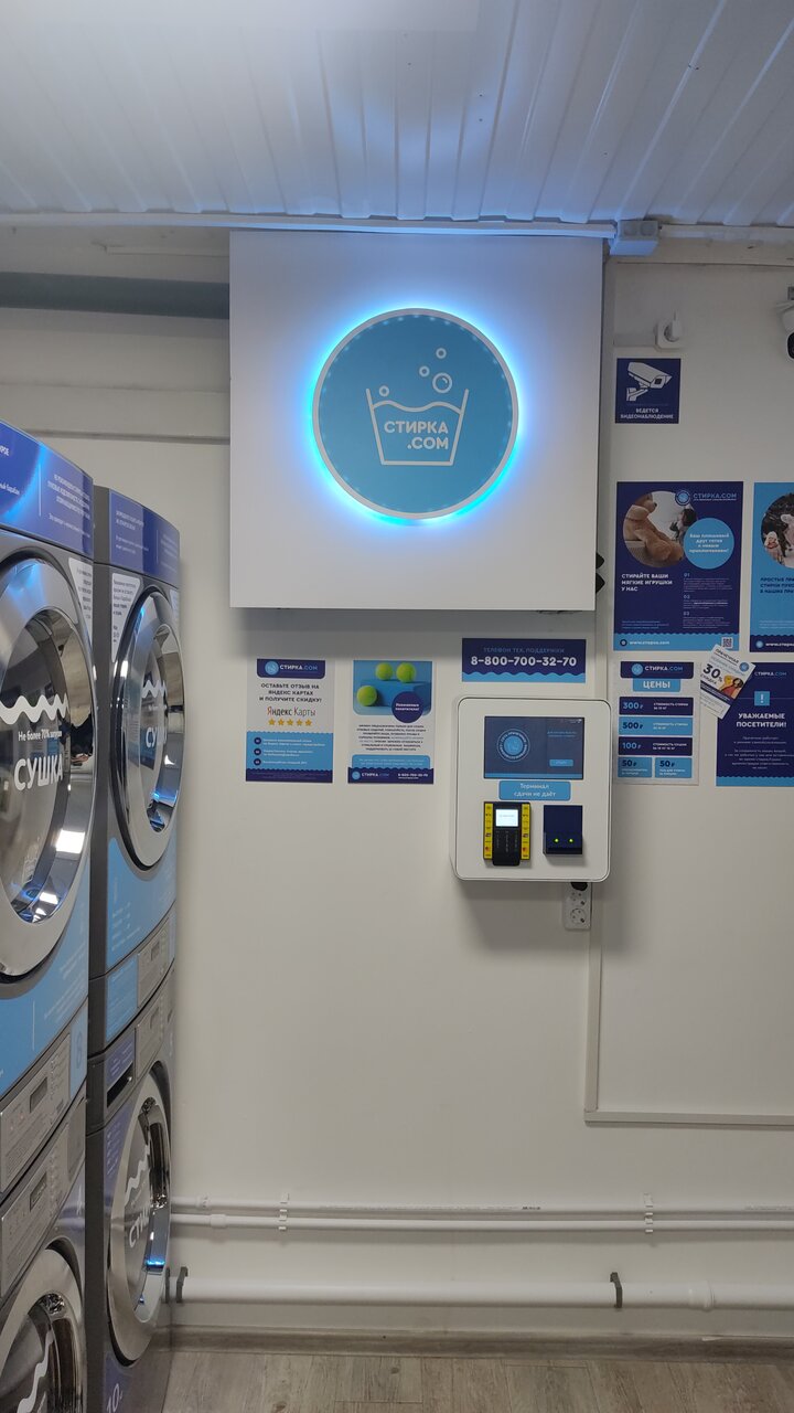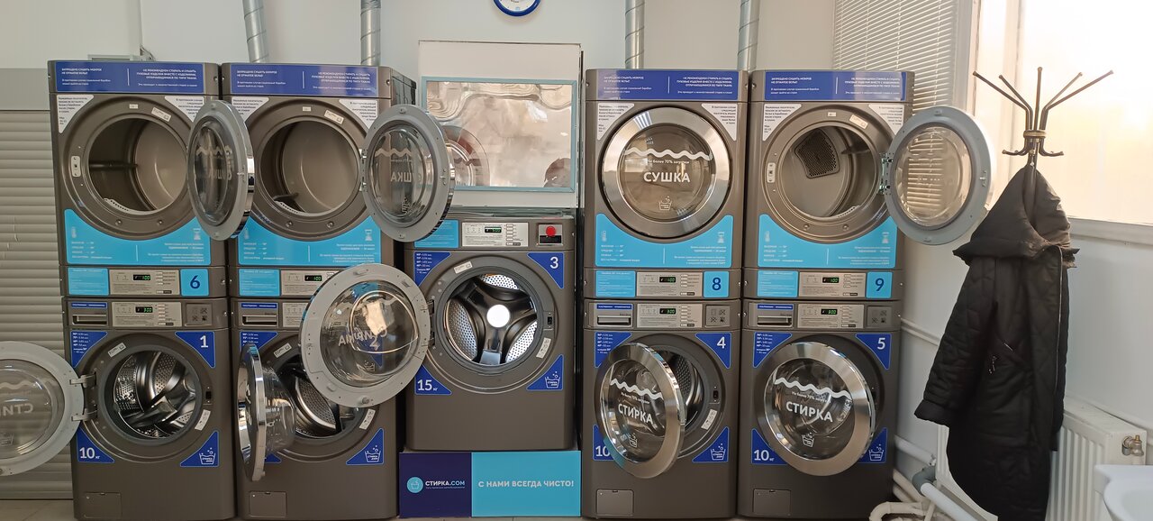 Очень чистое и уютное помещение, все стиральные машины работают отлично и без сбоев. + Очень удобный и простой интерфейс терминала оплаты. +Все что нужно для стирки здесь есть. 4 стиральные машины на 10 кг 1 стиральная машина на 15 кг для крупногабаритных вещей. 4 сушилки (есть мячики для взбивания во время сушки) Так же можно купить гель для стирки и ополаскиватель по доп. Цене +Отличные цены Стирка в машинке на 10 кг- 300 руб. Стирка в машинке на 15 кг- 500 руб. Сушка (любая) 150 руб. В целом отличное место где приятно провести время в ожидании того как закончится стирка и сушка. +Есть детский столик Плюсов очень много ,минусов не нашла.