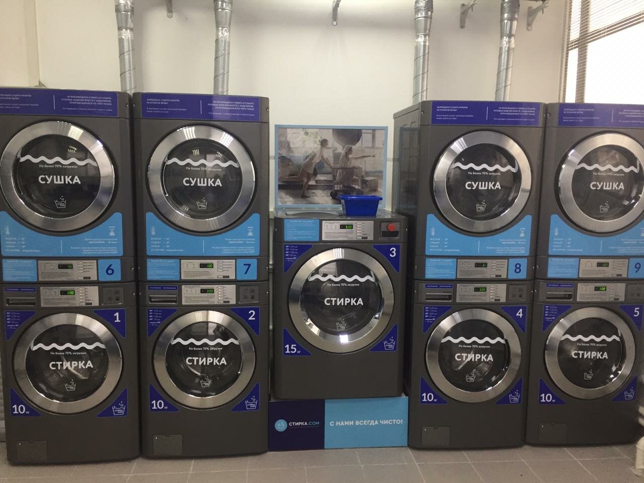 Хорошая прачечная 5 машин по 10 кг и одна 15 кг. Удобное местоположение