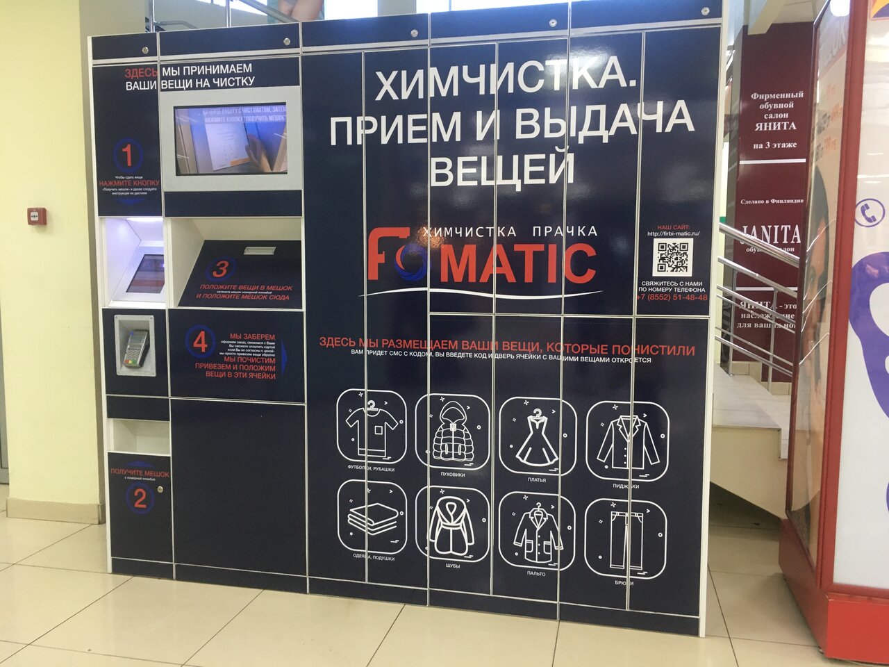 Хорошо чистят, оставляю зимние куртки Есть экспресс Машины, химия — все вроде Италия Внутри достаточно хорошо ориентированно для клиента. Кресла, столы и прочие мелочи