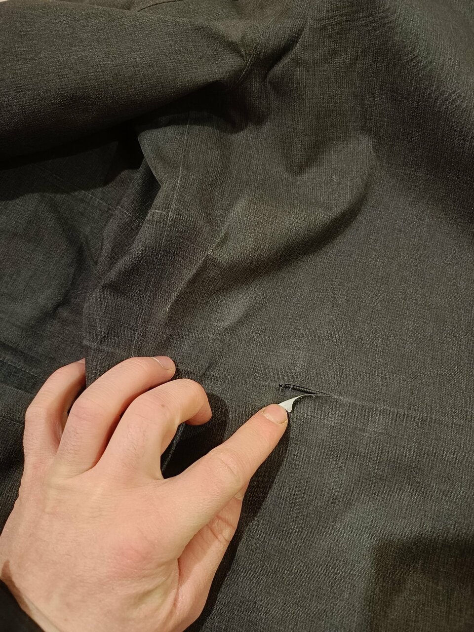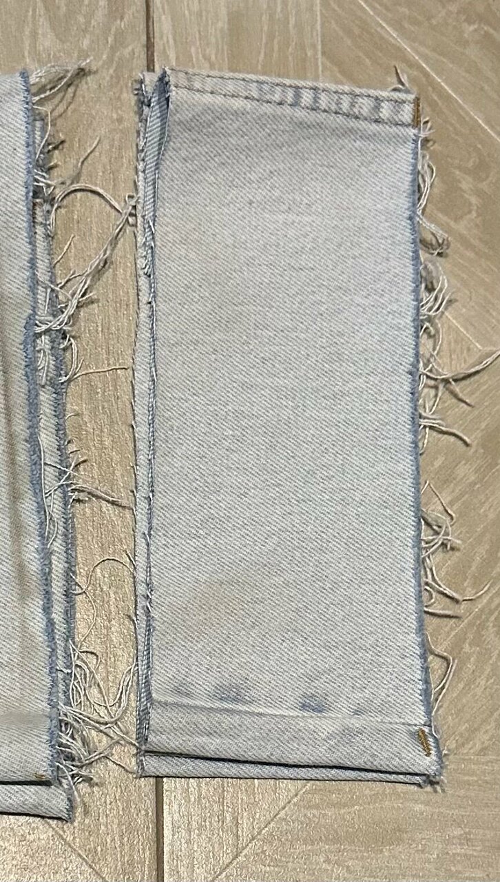 - Некачественный ремонт (например, неровный срез на джинсах).
