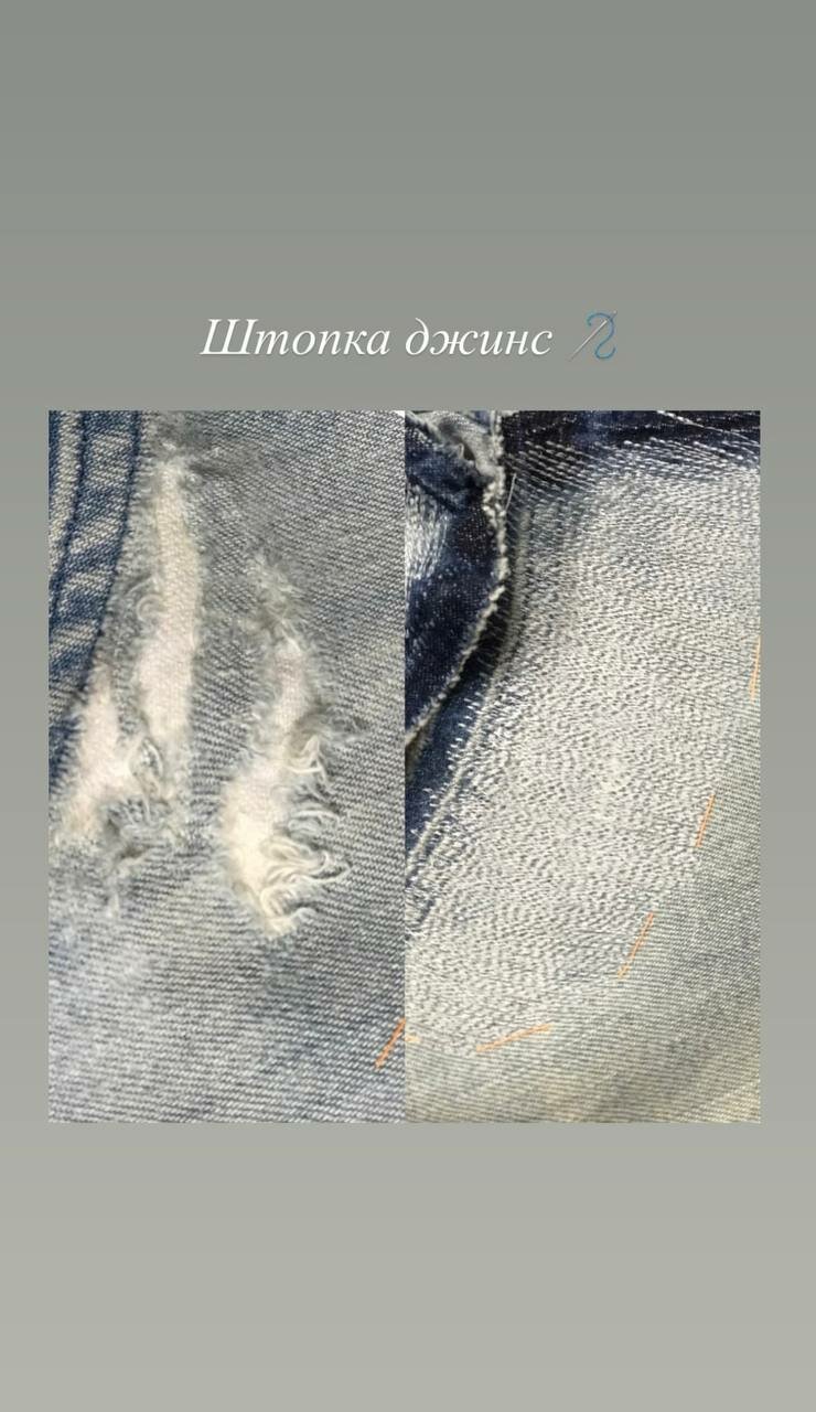 Штопка джинс. 5х5 600р Стоимость от 600₽, в зависимости от сложности и объема работ.