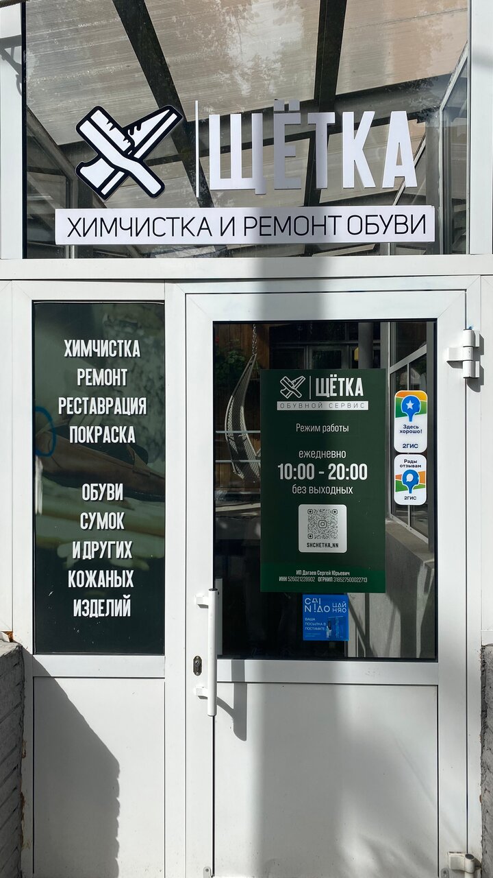 Химчистка «Щётка» в Нижнем Новгороде, расположенная по адресу улица Звездинка, 24, предлагает профессиональную очистку одежды, обуви, текстиля, кожи, меха, ковров и мебели. Работает ежедневно с 10:00 до 20:00. Услуги включают доставку. Контактный телефон: +7 (831) 266-77-01.