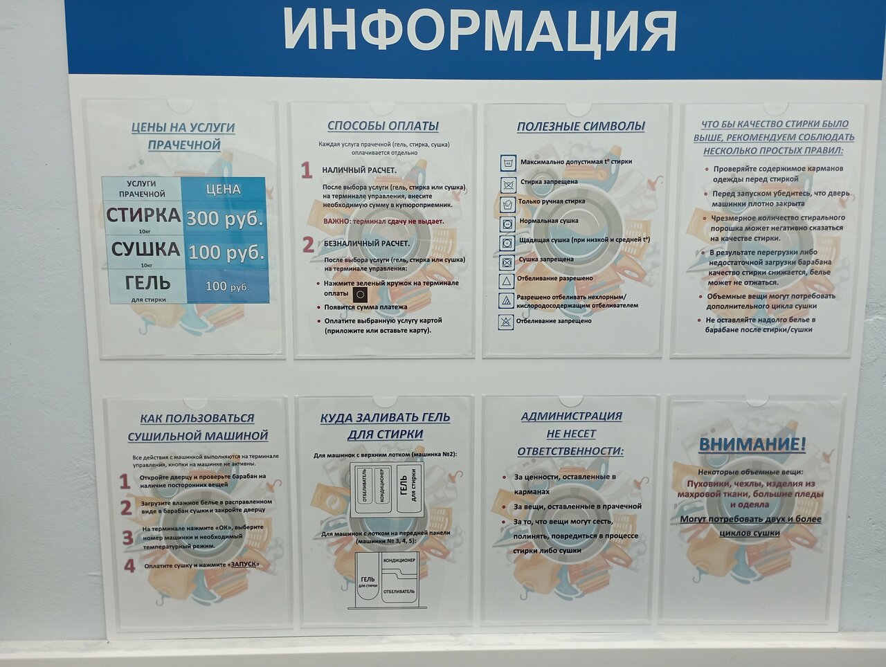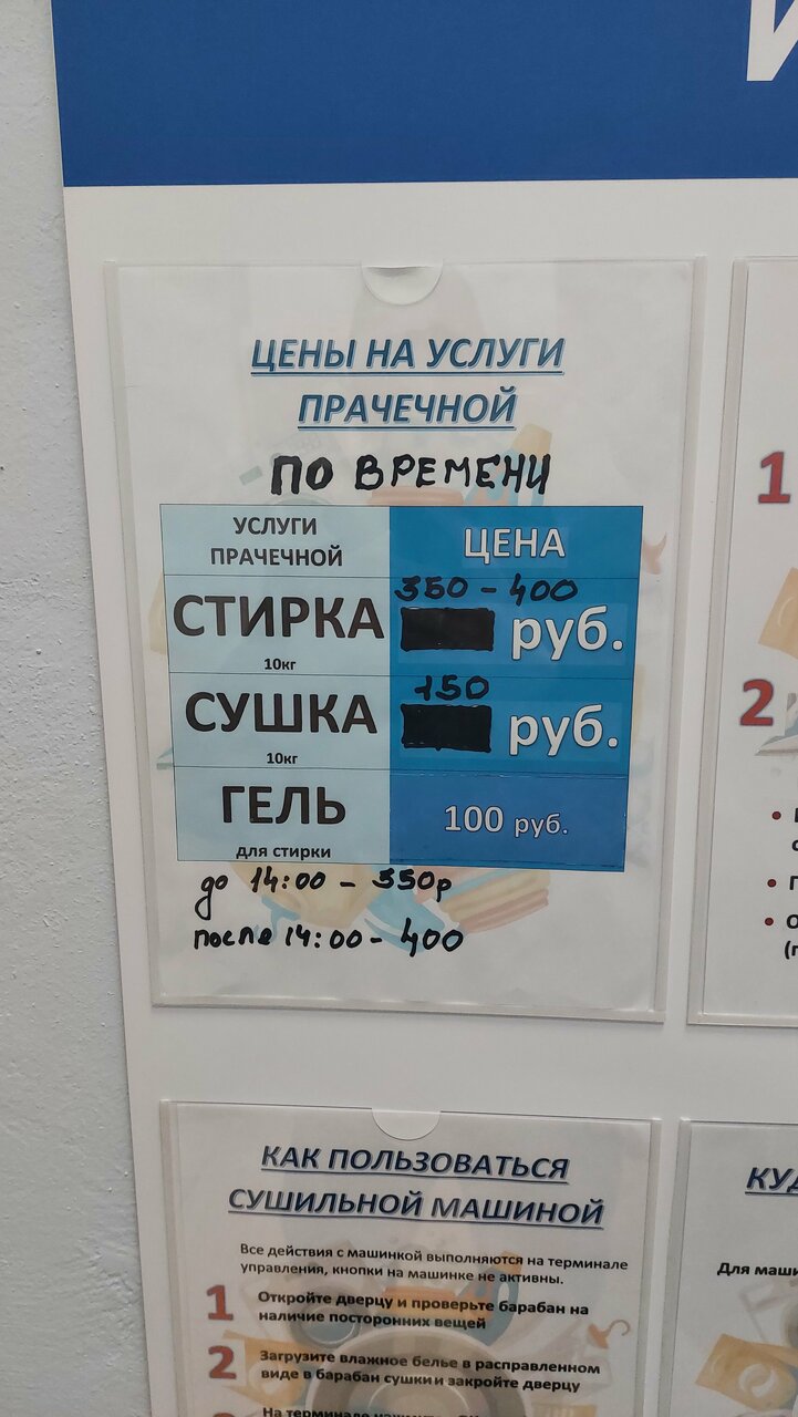 - Цены на стирку отличаются от указанных (зависят от температуры и времени).