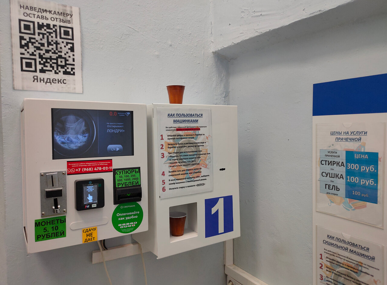 Отличная прачечная, удобный подьезд, расположение, удобно донести из машины ( для тяжелых покрывал/пледов). Легкое управление+много инструкций прямо перед лицом.В крайнем случае дозвониться до поддержки-дело 5 секунд, набрал и тебе сразу ответили, культурно, адекватно и быстро решат любой вопрос!Хороший гель для стирки и само качество стирки, езжу не первый раз. Однозначно приеду еще раз именно сюда!