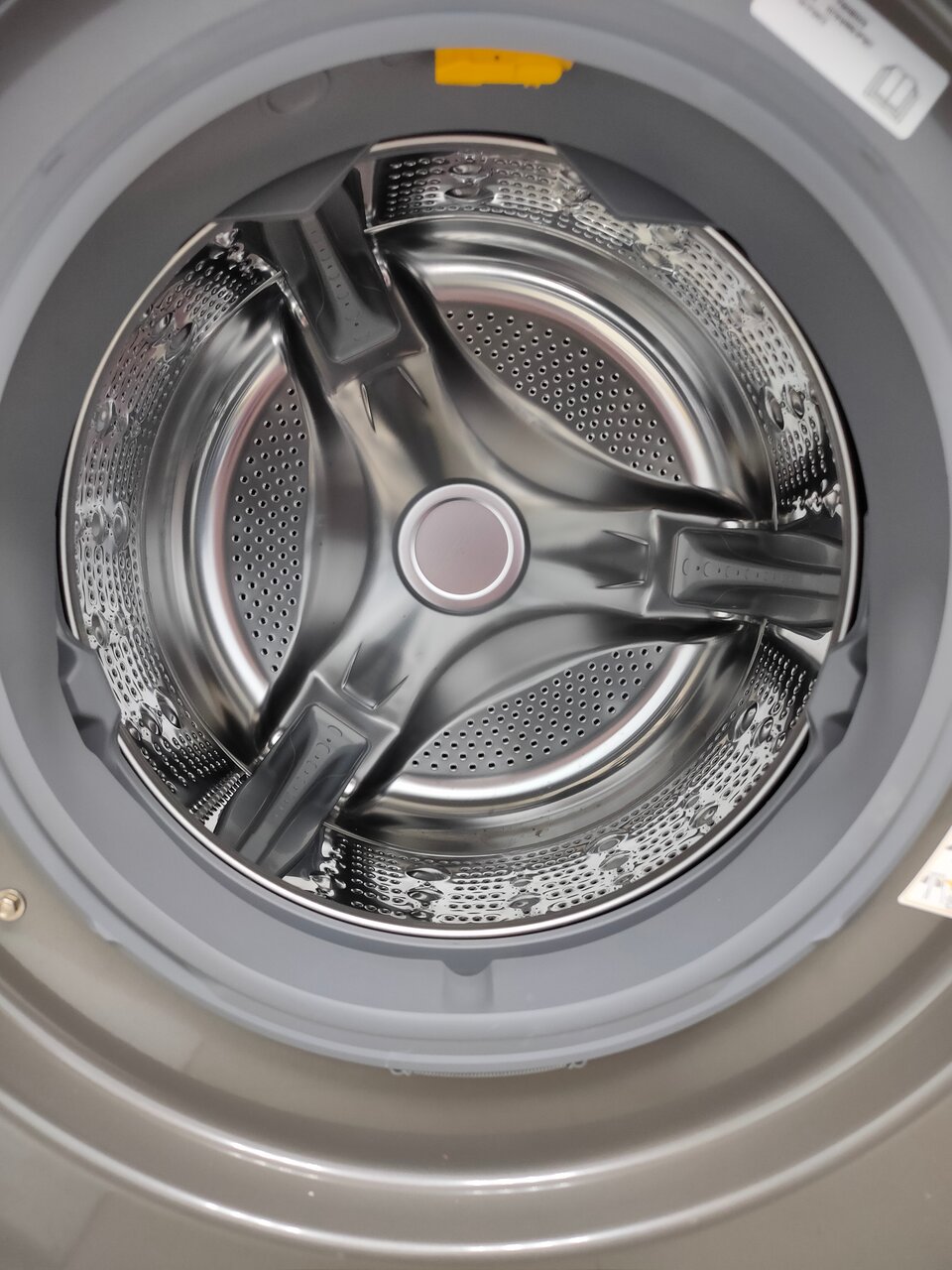 Стирка в профессиональной машине с большим барабаном.
