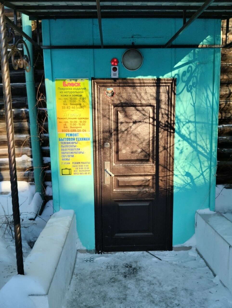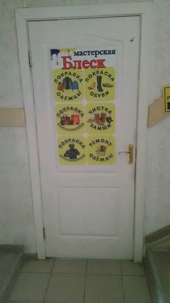 Химчистка «Блеск» в Омске, расположенная по адресу ул. Красных Зорь, 33, предлагает профессиональную очистку одежды, обуви, текстиля, кожи, меха, ковров и мебели с использованием современных технологий и химических средств. Режим работы: пн-пт 10:00–18:00, сб 11:00–15:00. Контактные телефоны: +7 (3812) 33-82-46, +7 (904) 328-42-35, +7 (913) 633-82-46, +7 (923) 688-58-04. Сайт не указан.