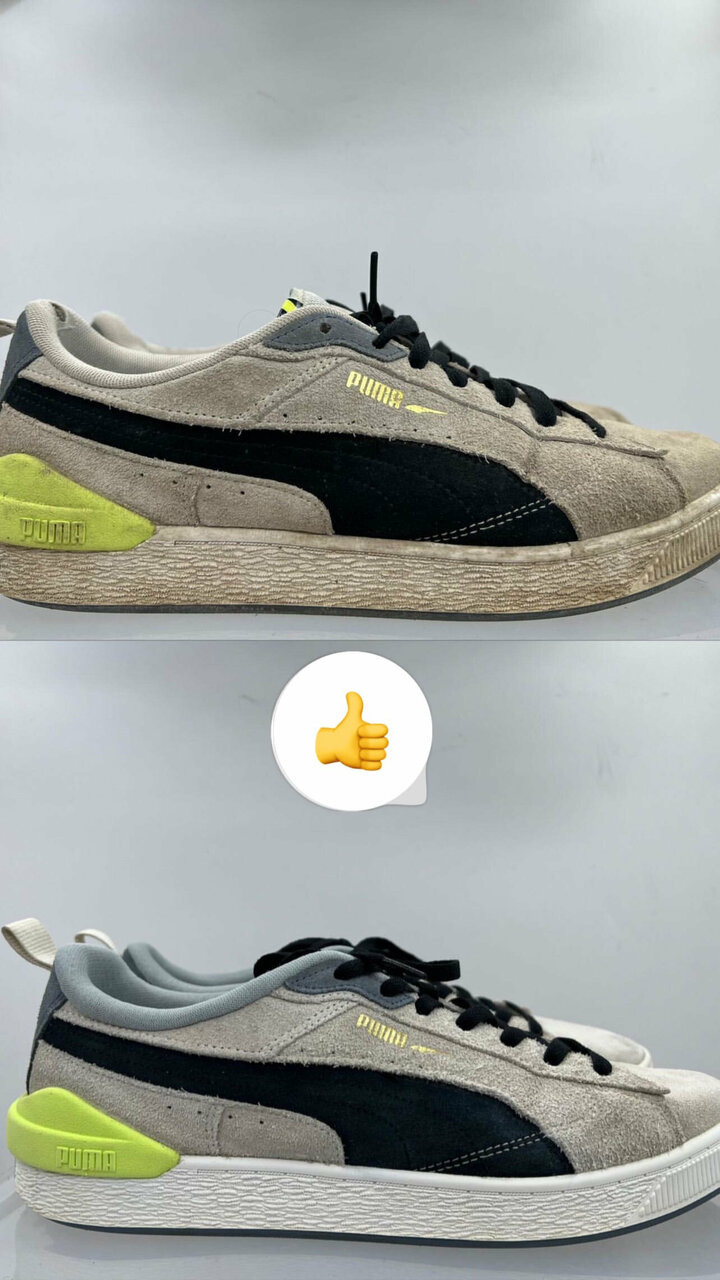 Добрый вечер! Ребята просто молодцы Я решила поэкспериментировать и постирала кроссовки белые, с черными полосками по бокам, нет фото к сожалению, для наглядности, что из этого получилось Конечно мои любимые кроссовки превратились в не что! Отнесла ребятам, предупредили сразу, что возможно, не получится убрать пятна чёрные , за что отдельное спасибо, очень честно ! Но у них все получилось. Как новенькие)) Благодарю от души и рекомендую