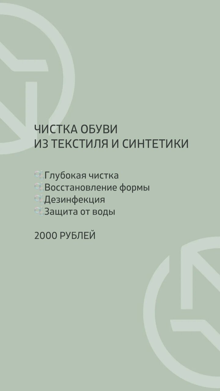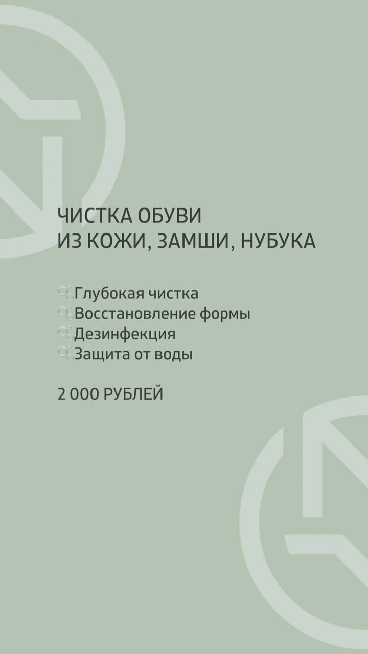 - Восстановление внешнего вида обуви (цвет, материал).; Удобное расположение (центр города).; Качественное обслуживание и ремонт.; Гибкость в сроках (идут навстречу клиентам).; Чистота обуви после химчистки (внутри, шнурки, подошва).