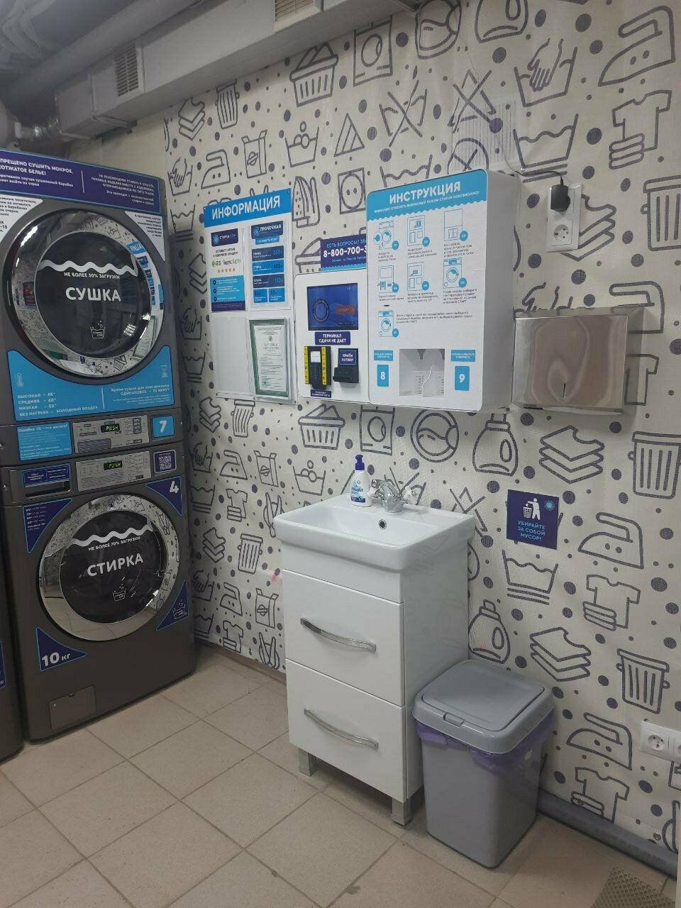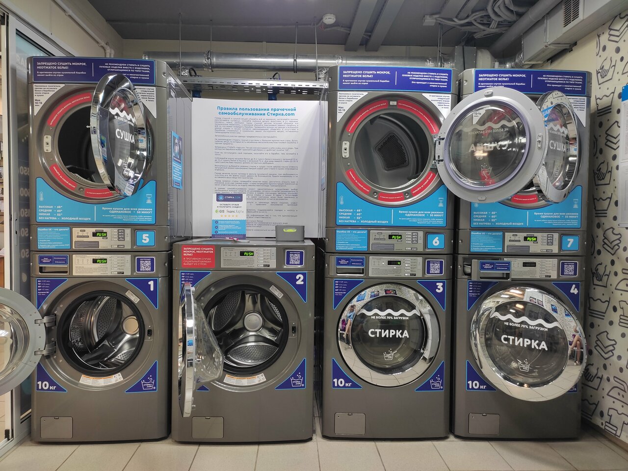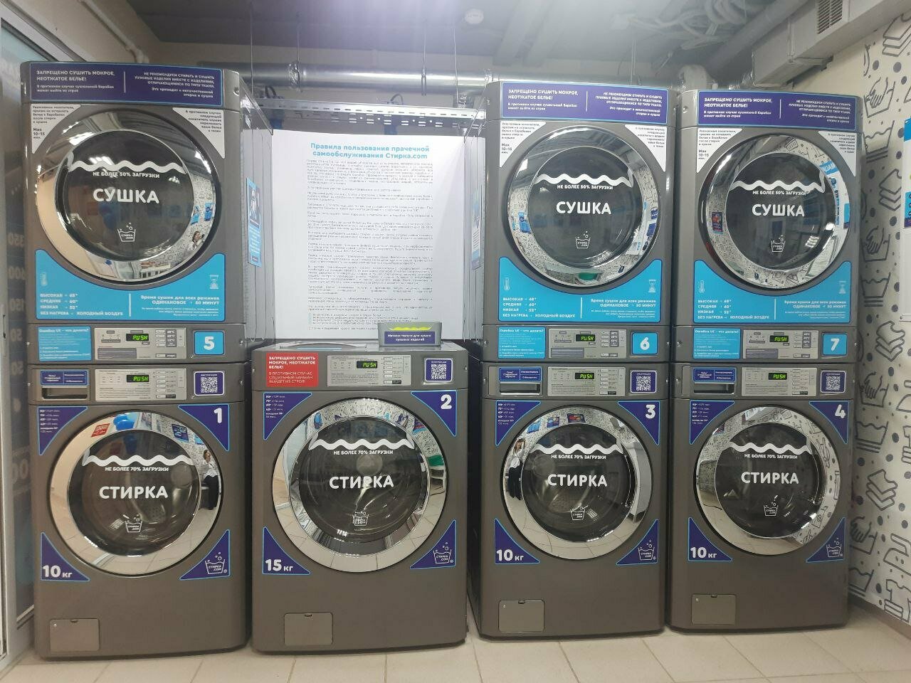 Узнала о существовании данной прачечной по поиску в интернете — сломалась дома стиральная машинка, стирка ‘вручную’ отнимает много времени, создает массу неудобств, плюс при наличии двух детей вещей для, стирки за неделю скапливается все таки много. Могу сказать только — очень очень нужная помощь для людей которым необходима стирка при отсутствии стиральной машинки. Первое впечатление: удобное месторасположение, от моего дома недалеко, в помещении прачечной чисто, аккуратно. Если внимательно все рассмотреть — присутствует справочная информация, на стендах, в т. ч. есть инструкция по запуску стиральной машинки. При необходимости можно сделать звонок на телефон ‘горячей линии’ все объяснят. Во время, стирки можно зайти в некоторые магазинчики, которые находятся, рядом. Со своей задачей по стирке и сушке вещей (есть также сушильные машинки) стиральные машинки справляются, отлично. Также несомненный плюс — довольно адекватные цены за стирку.