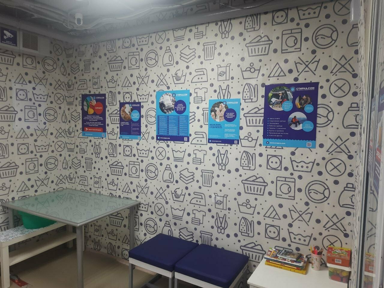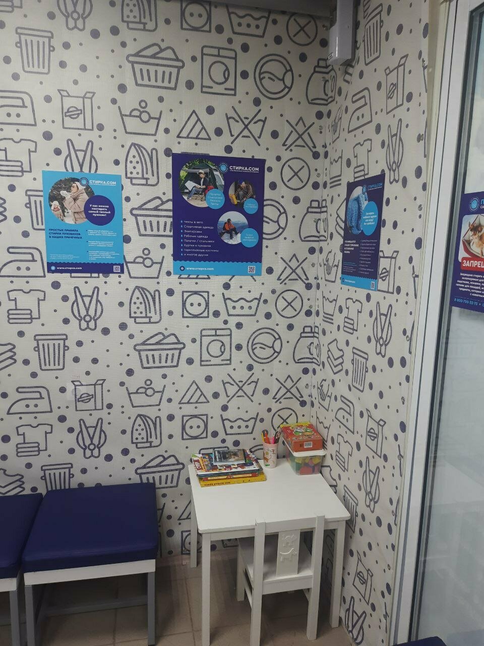 - Наличие зоны ожидания и столика для детей.; Чистое и аккуратное помещение.; Наличие "горячей линии" для консультаций.; Быстрая и качественная стирка.; Наличие сушильных машинок.