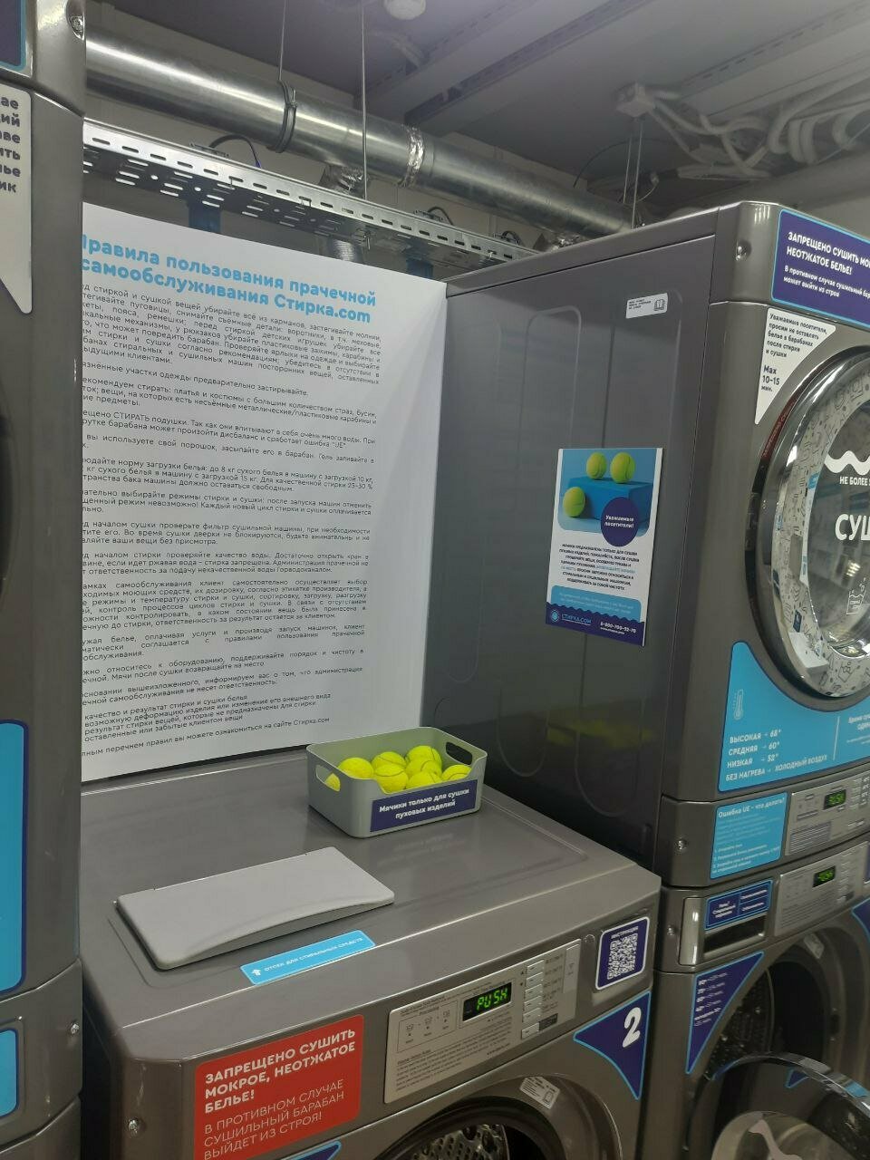 Хорошие стиральные машины, в наличие доступен гель для стирки и сушильная машина! Из минусов далекое расположение от центра! Хотелось бы такую же прачечную именно в центре!