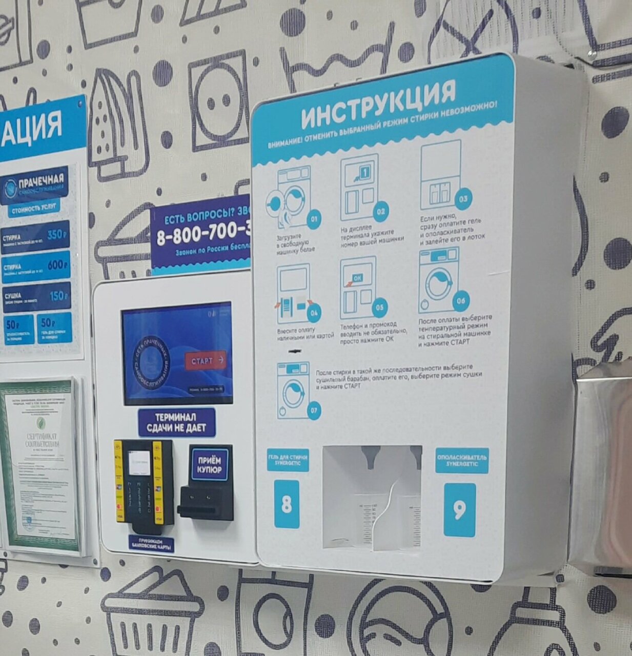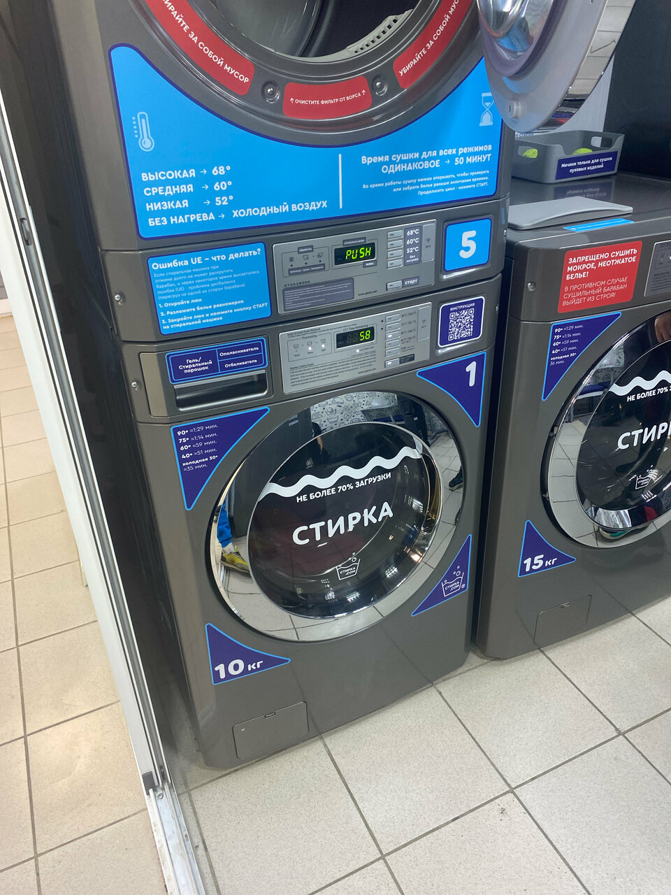 Пришли, выбрали на терминале свободную стиралку, а она не завершила стирку после прошлого клиента В итоге трусы и прочее покатались на аттракционе за 350 рублей 9 минут и потом машинка снова попросила оплату