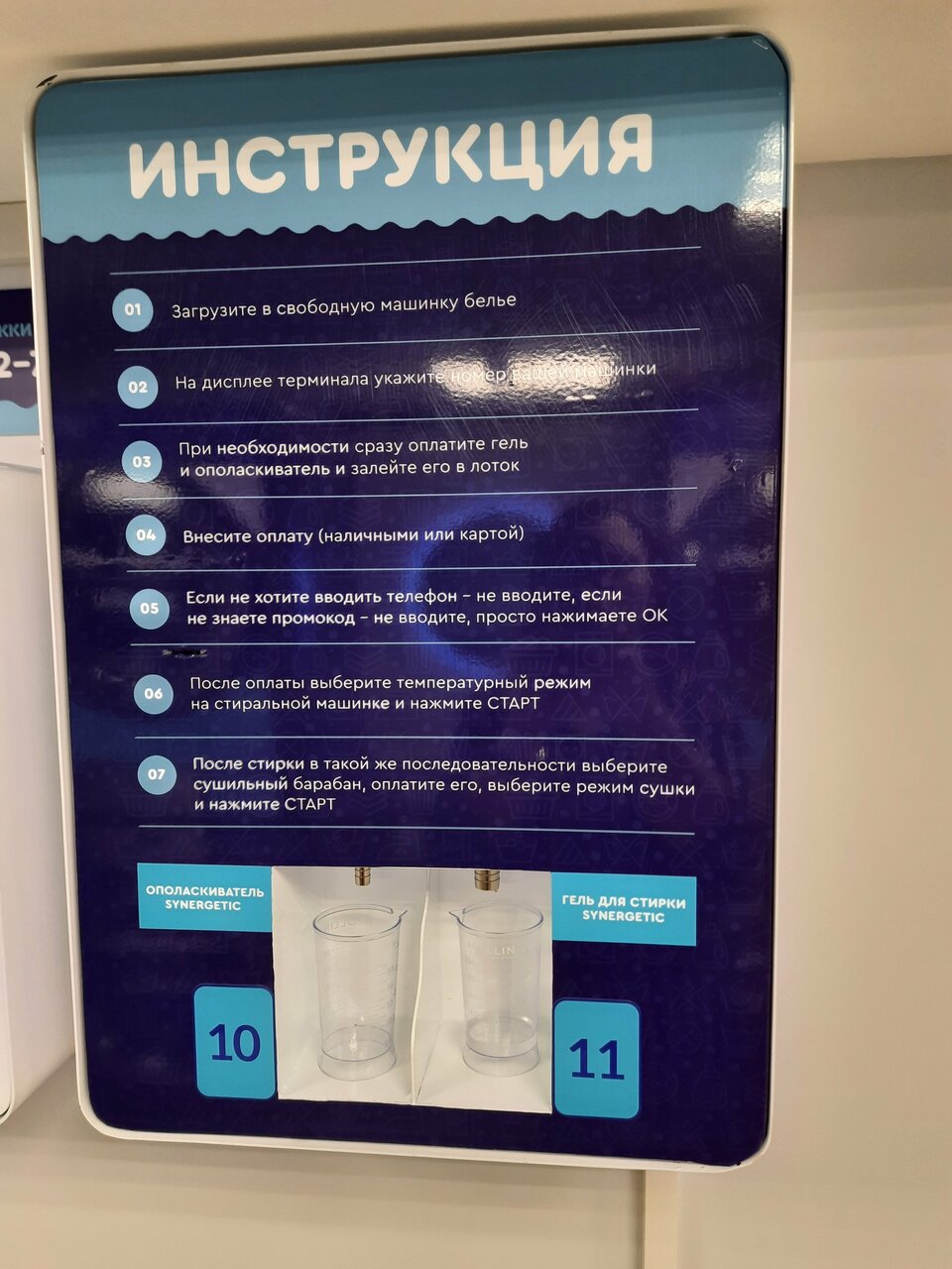У нас вы можете приобрести средства для стирки Synergetic порционно(порция-60мл).По желанию можно воспользоваться своими средствами для стирки.