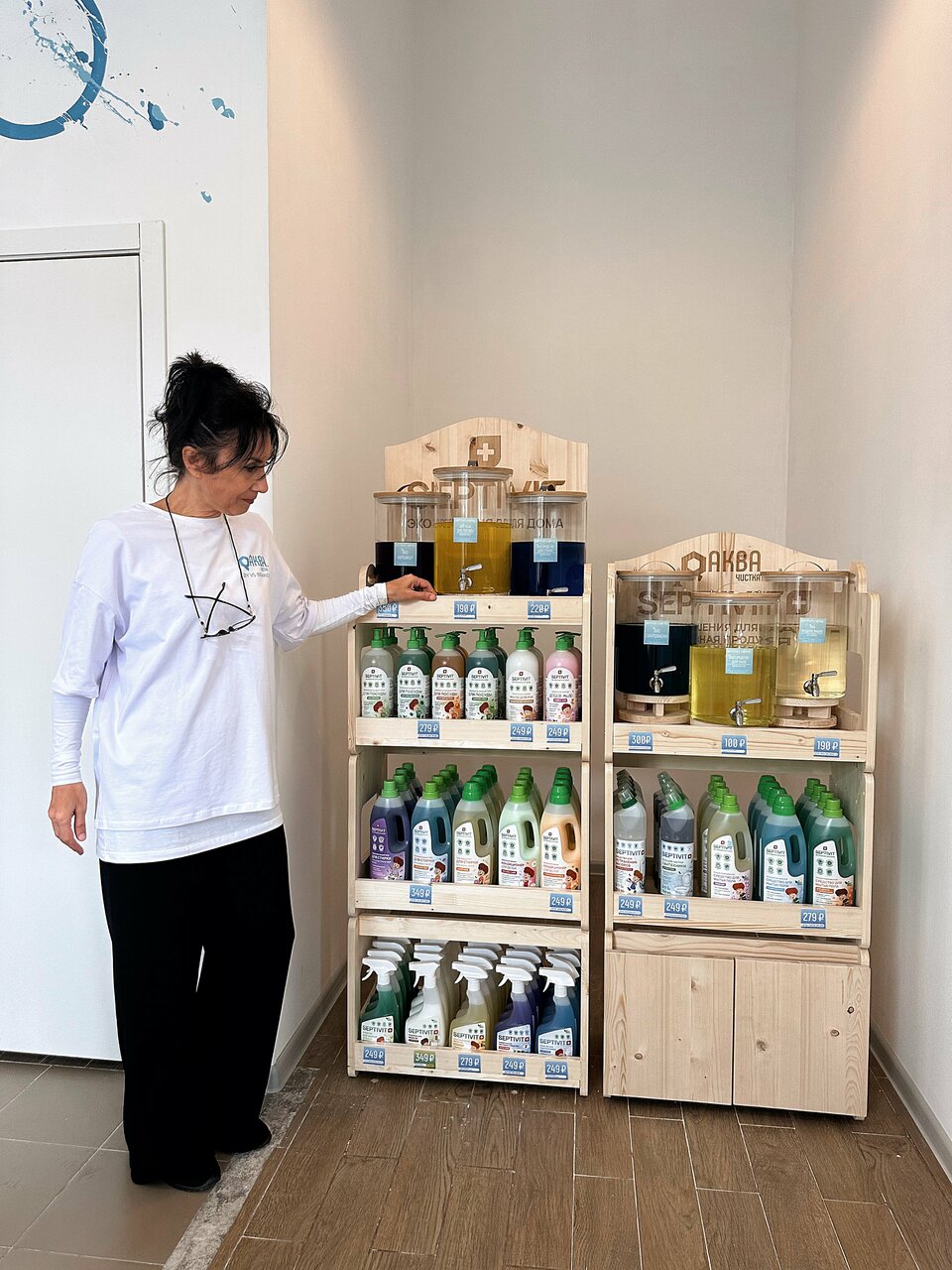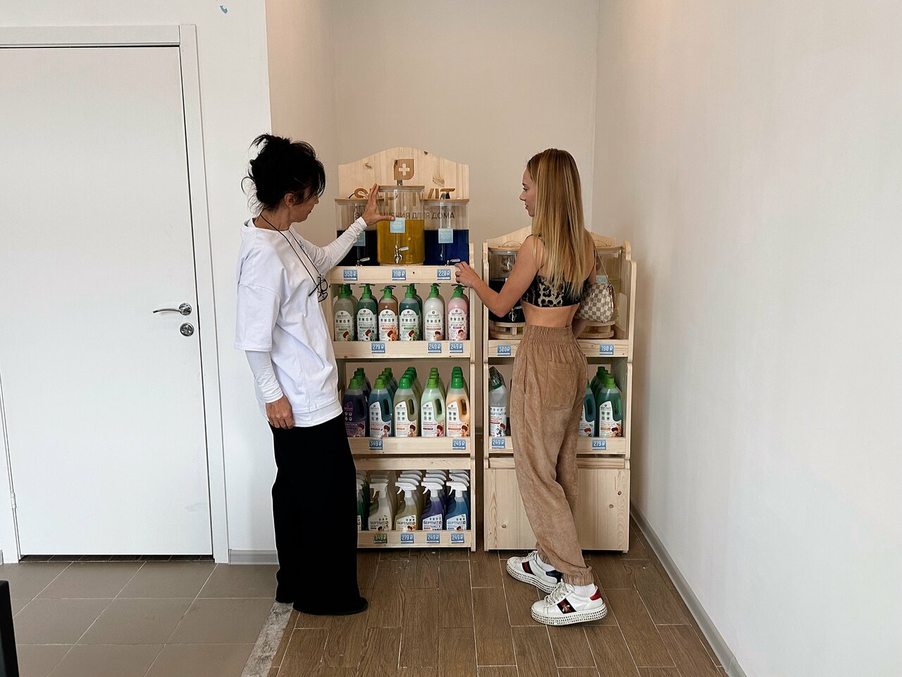 - Наличие стеллажей с бытовой химией для покупки.