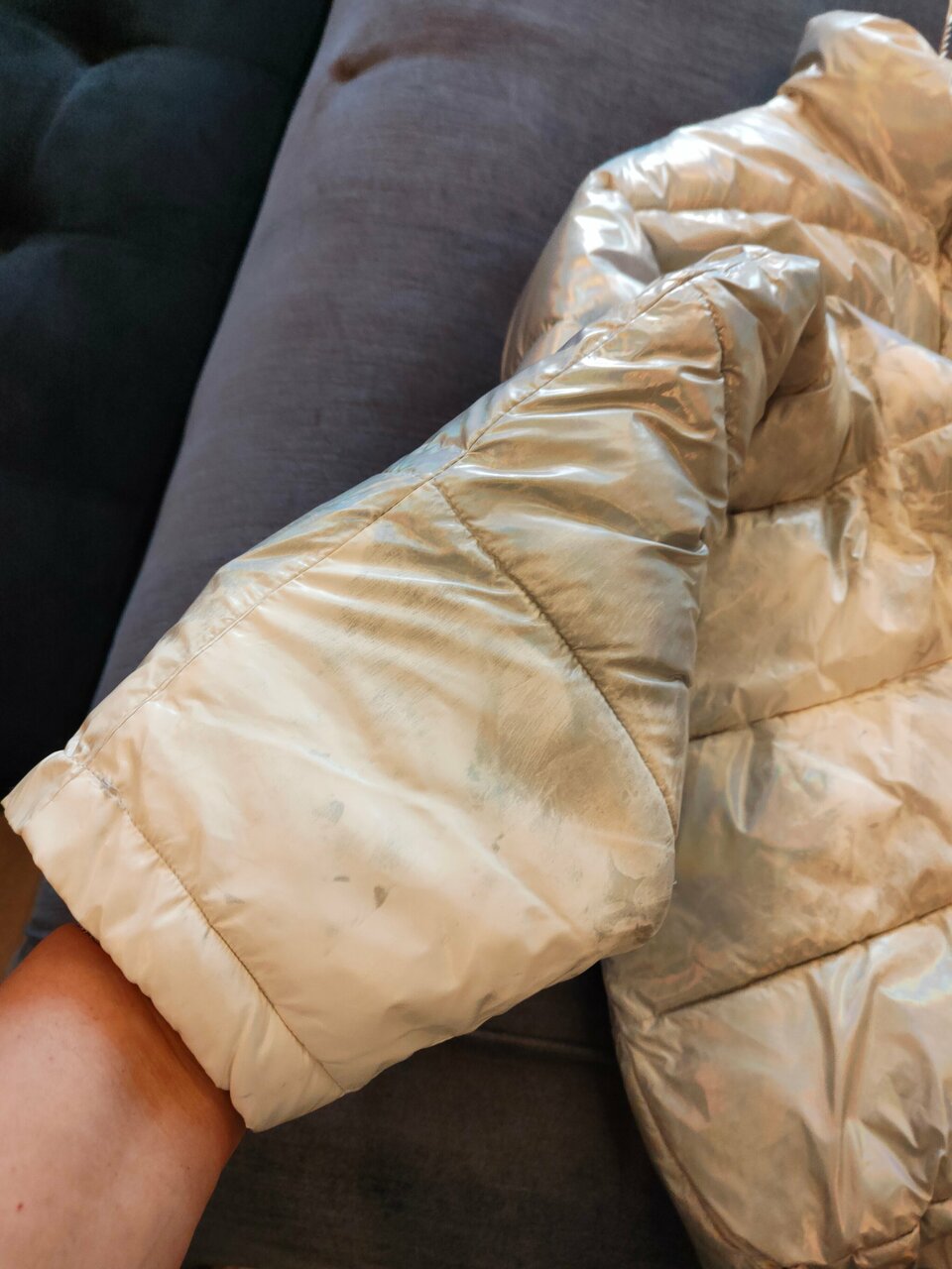 - Изменение цвета вещей после чистки (пуховик стал бледнее).