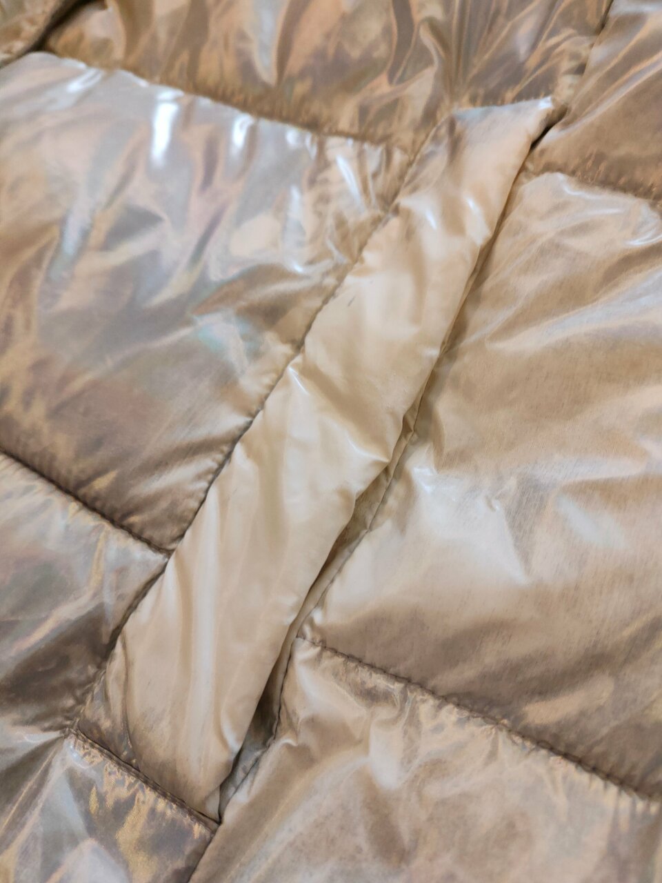 - Скомканный наполнитель в пуховике.