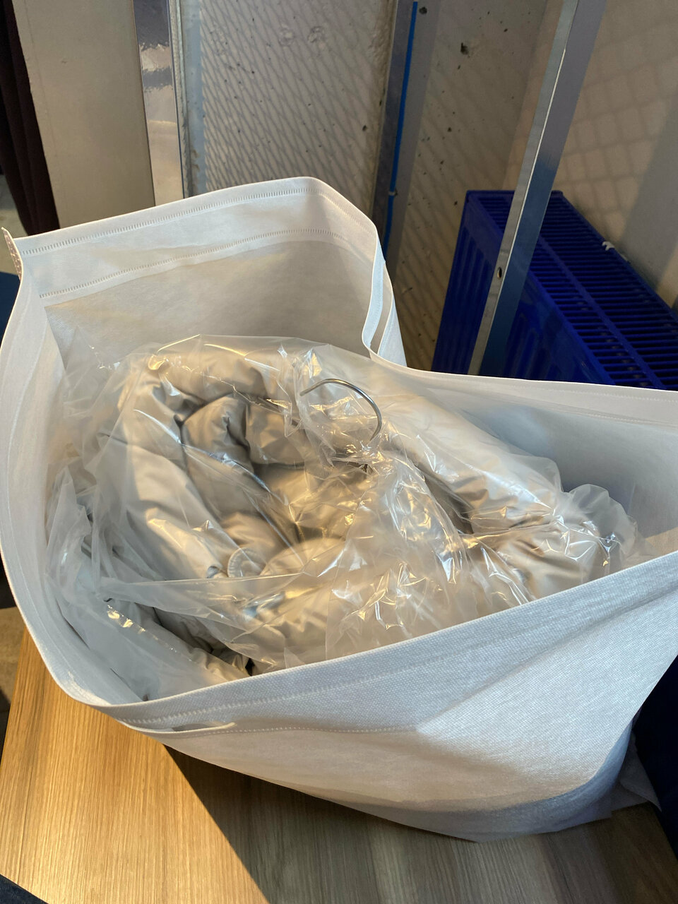 - Вещи упаковывают в текстильные пакеты.
