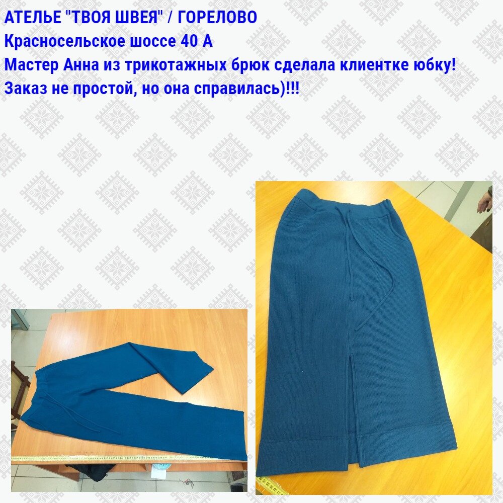Хорошее ателье,купил штаны,а они широкие,нужно было их укоротить,ребята помогли сделать все быстро. Очень доволен их работой!